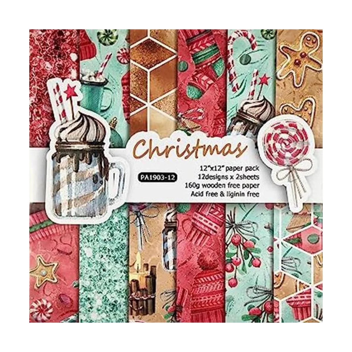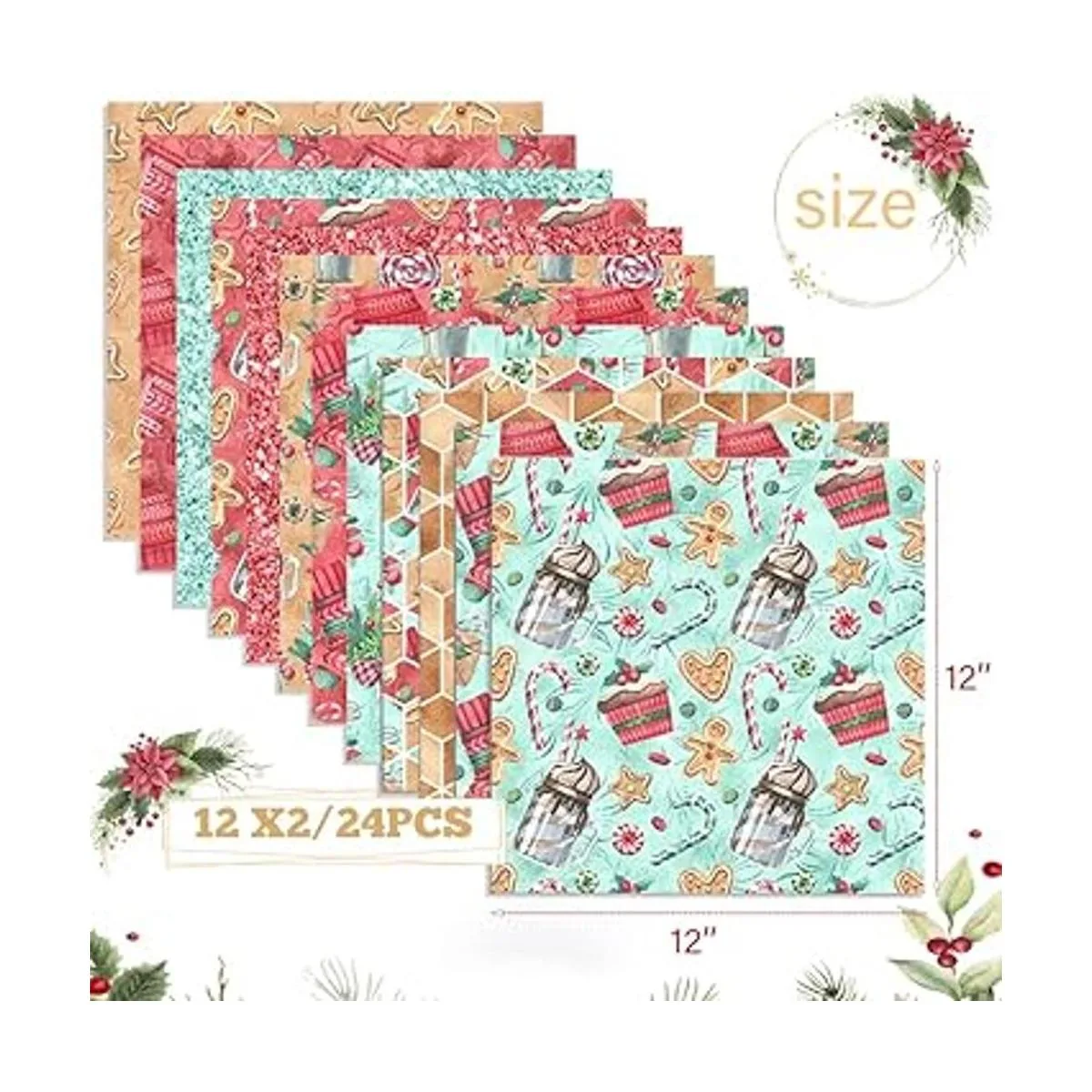 Paquete de 24 unidades de papel para álbumes de recortes de Navidad, paquete de papel de origami de 12 x 12 pulgadas, papel decorativo para manualidades, álbum de fotos