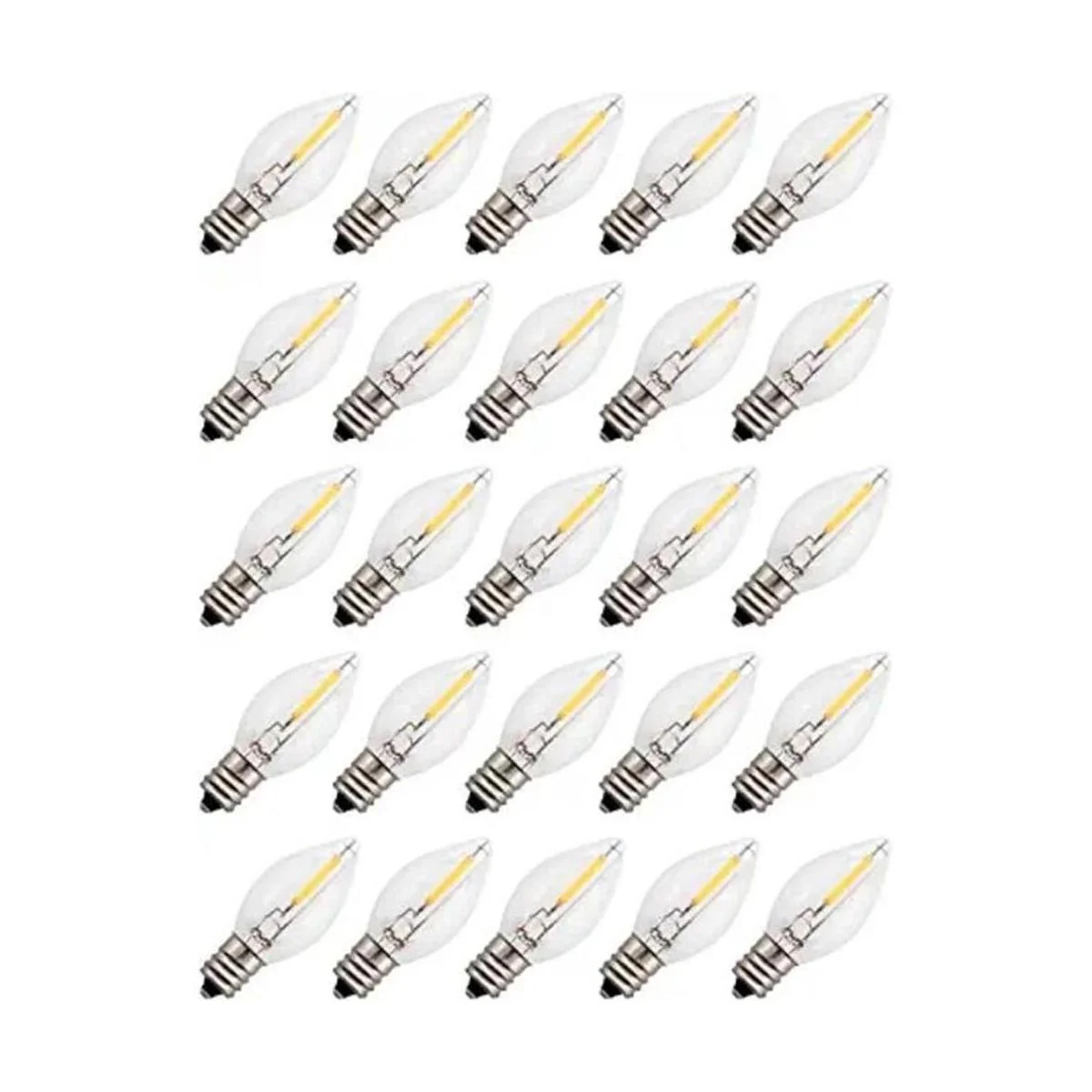 Paquete de 25 bombillas LED de repuesto C7, 4 W, 5 W, 6 W, 7 W, equivalente incandescente, bombillas de luz nocturna C7, cuerdas de luz de Navidad, velas eléctricas para ventana