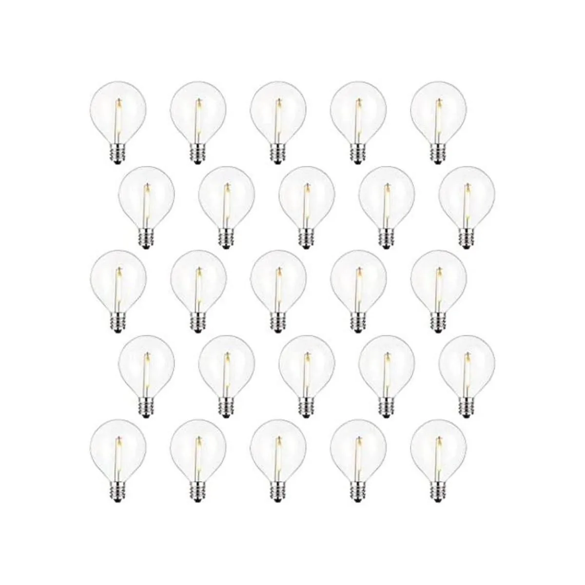 Paquete de 25 bombillas LED G40 de repuesto E12 con base de rosca LED para luces de patio, equivalente a bombillas transparentes de 0,6 W