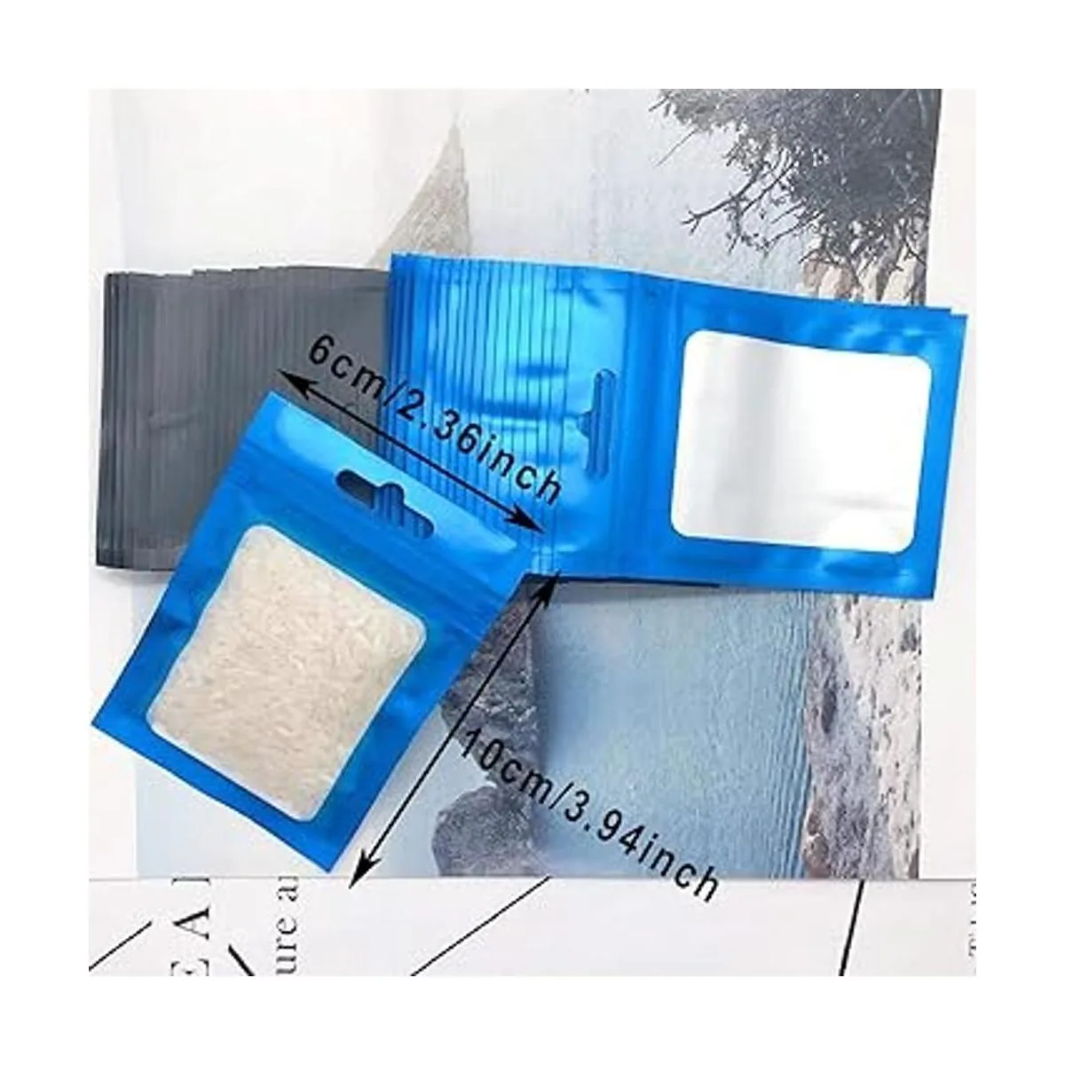 Diseño: las bolsas con cremallera de aluminio con diseño de agujero para colgar, cómodo de usar; resellable, la bolsa de aluminio es fácil de cerrar y resellable.