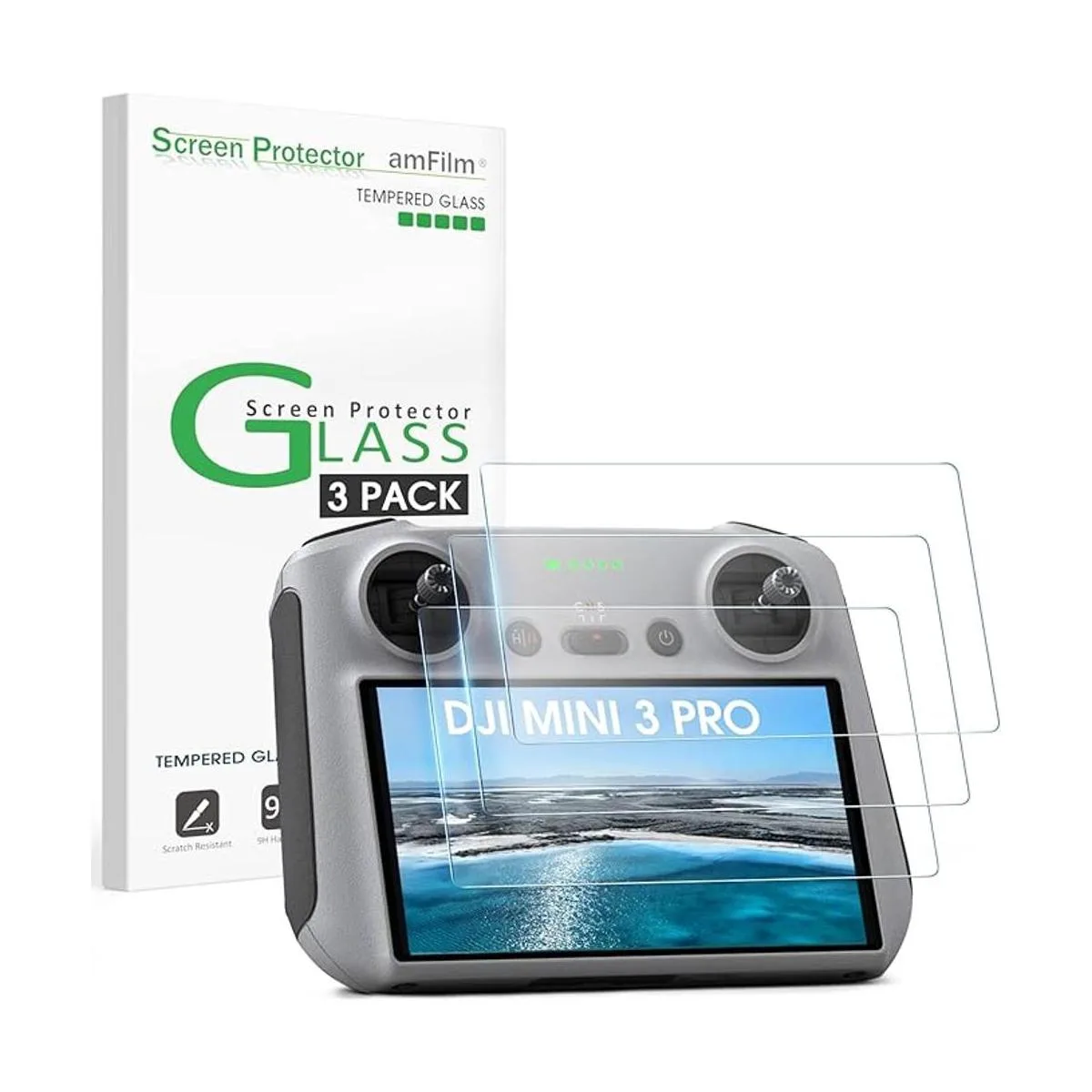 [Paquete de 3] amFilm DJI Mini 3 Pro Protector de pantalla compatible con control remoto DJI RC, protector de pantalla de vidrio templado para accesorios DJI Mini 3 Pro, fácil instalación, tacto ultra sensible, sin burbujas