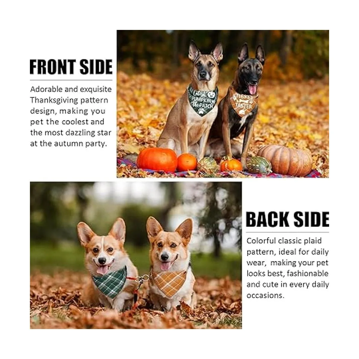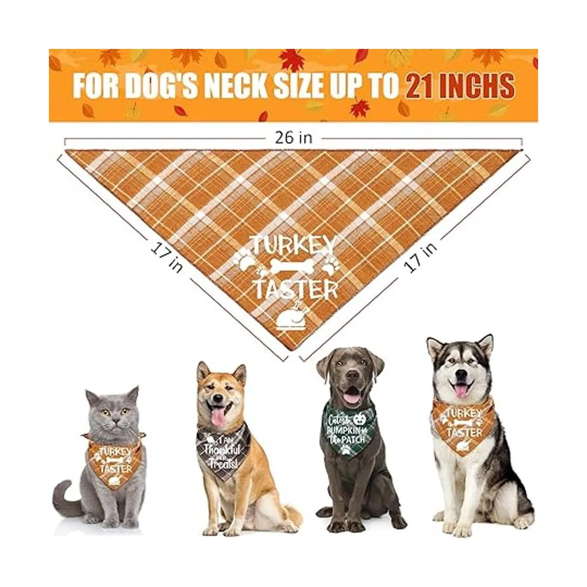 Para cuello de perro de hasta 21 pulgadas: las bandanas de Acción de Gracias para perros vienen como un babero triangular de 26 x 17 pulgadas base x hipotenusa, que se pueden plegar varias veces y también pueden evitar que el pecho de tu perro sufra todo tipo de alimentos, baba y suciedad. Bufanda de perro de Acción de Gracias para cuello de mascota de hasta 21 pulgadas y mide el tamaño de tu lindo y deja espacio para atar nudos. Estas bandanas para perros son ideales para perros de tamaño pequeño a mediano como pomerania, lucha francesa, lucha británica, perro de montaña, etc.