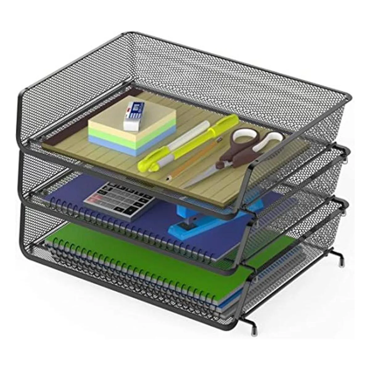 Paquete de 3 bandejas apilables para documentos de entrada ancha, color negro