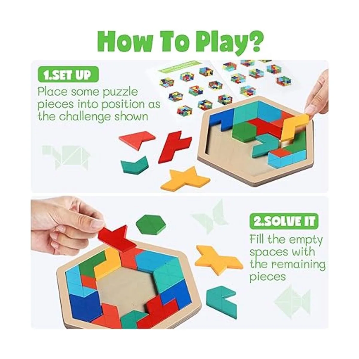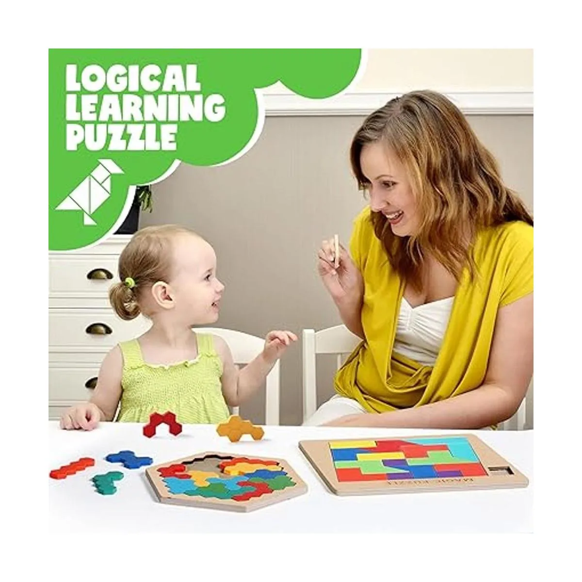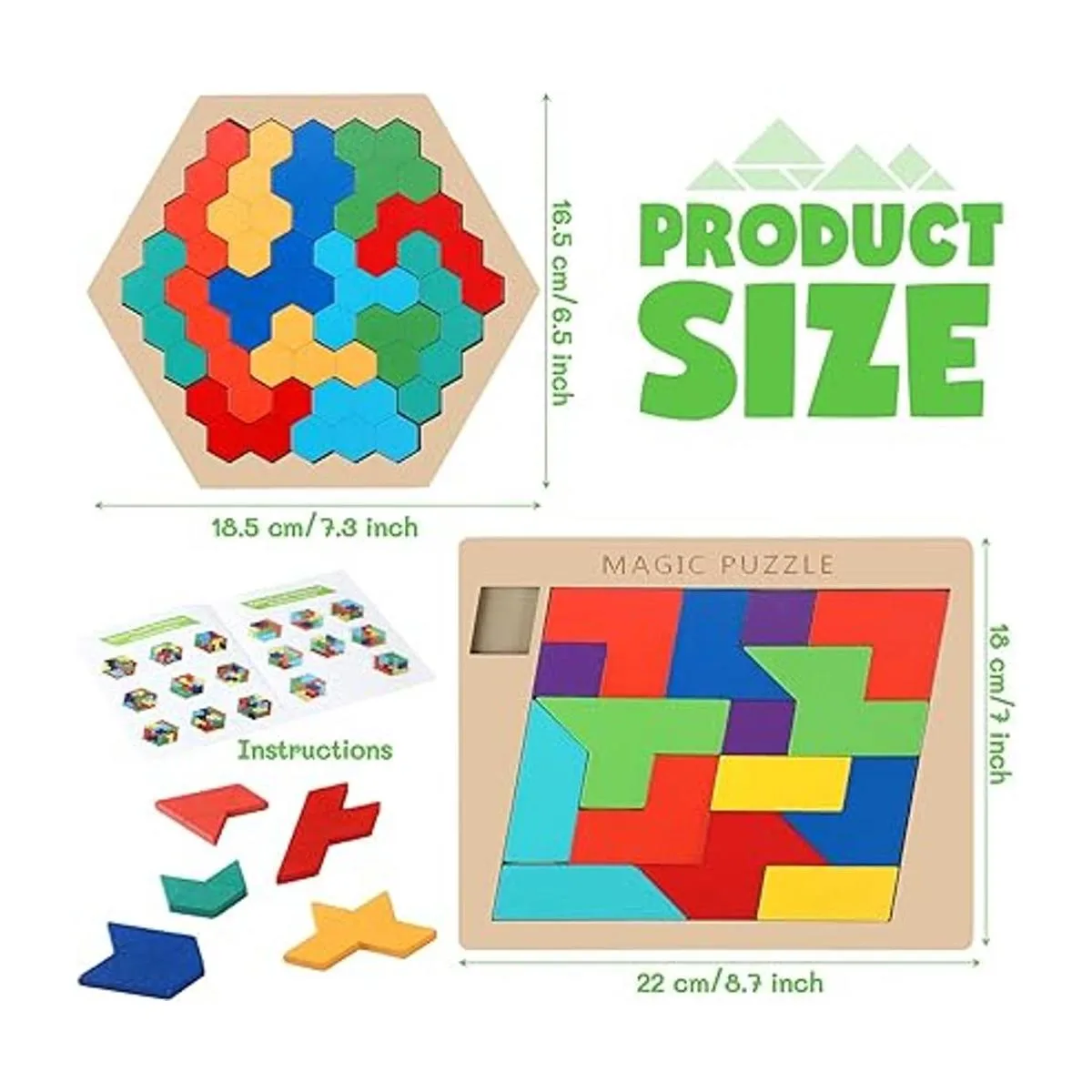 Tamaño del producto: el tamaño del rompecabezas hexagonal de madera es de aproximadamente 7.3 x 6.5 in, y el rompecabezas lógico rectangular mide aproximadamente 8.7 x 7.1 in, son compactos y ligeros, fáciles de jugar y transportar