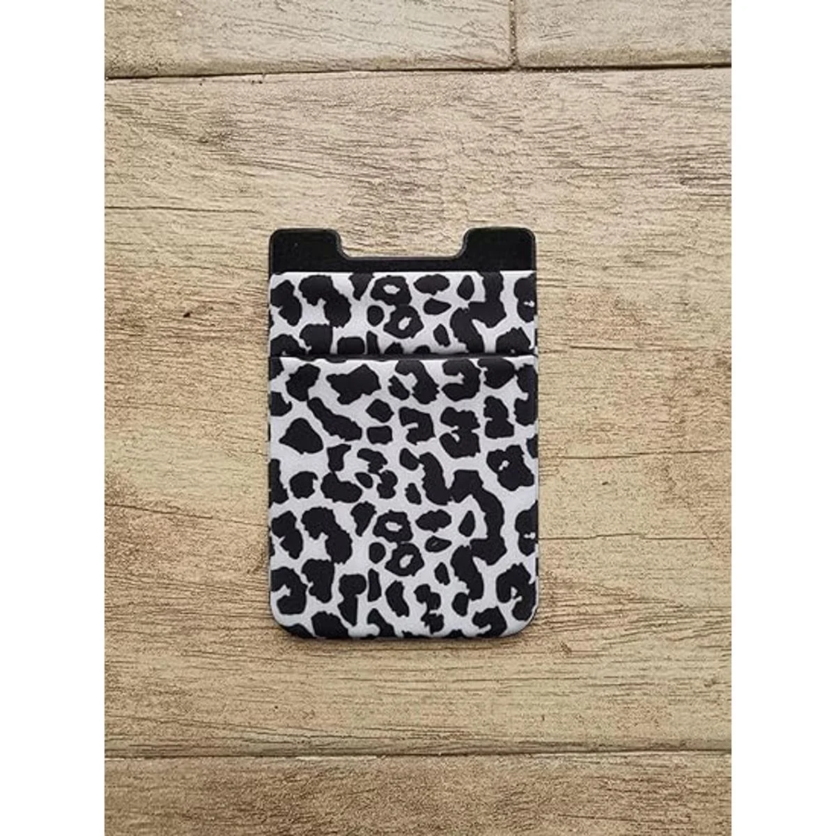 Color y cantidad y material: patrón de leopardo blanco con interior negro/3 soportes para tarjetas en el paquete/material de licra de elastano
