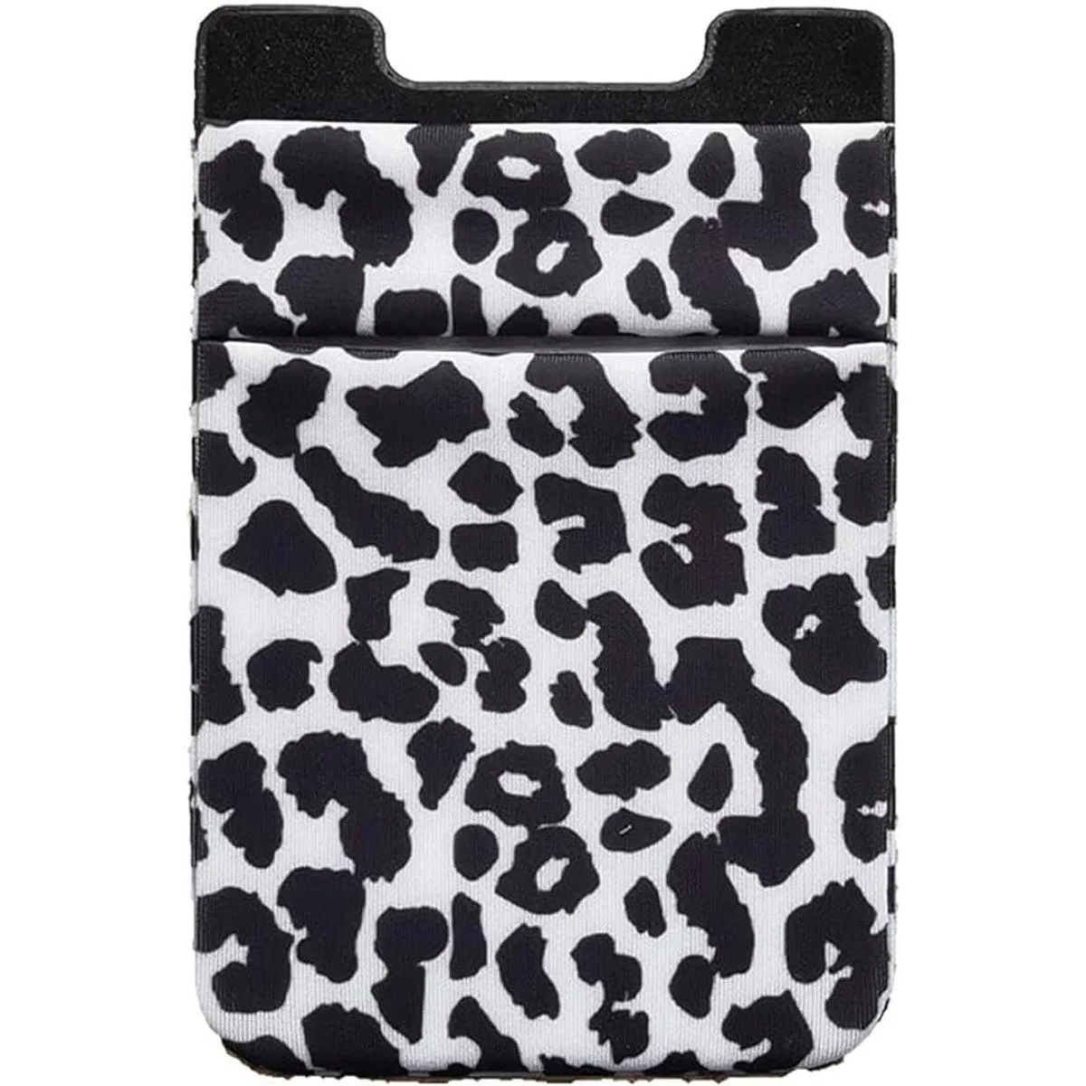Paquete de 3 bolsillos adhesivos para teléfono celular, tarjetero para la parte posterior del teléfono, cartera de tarjetas doble segura con adhesivo para iPhone, Android y todos los teléfonos inteligentes con doble bolsillo leopardo blanco