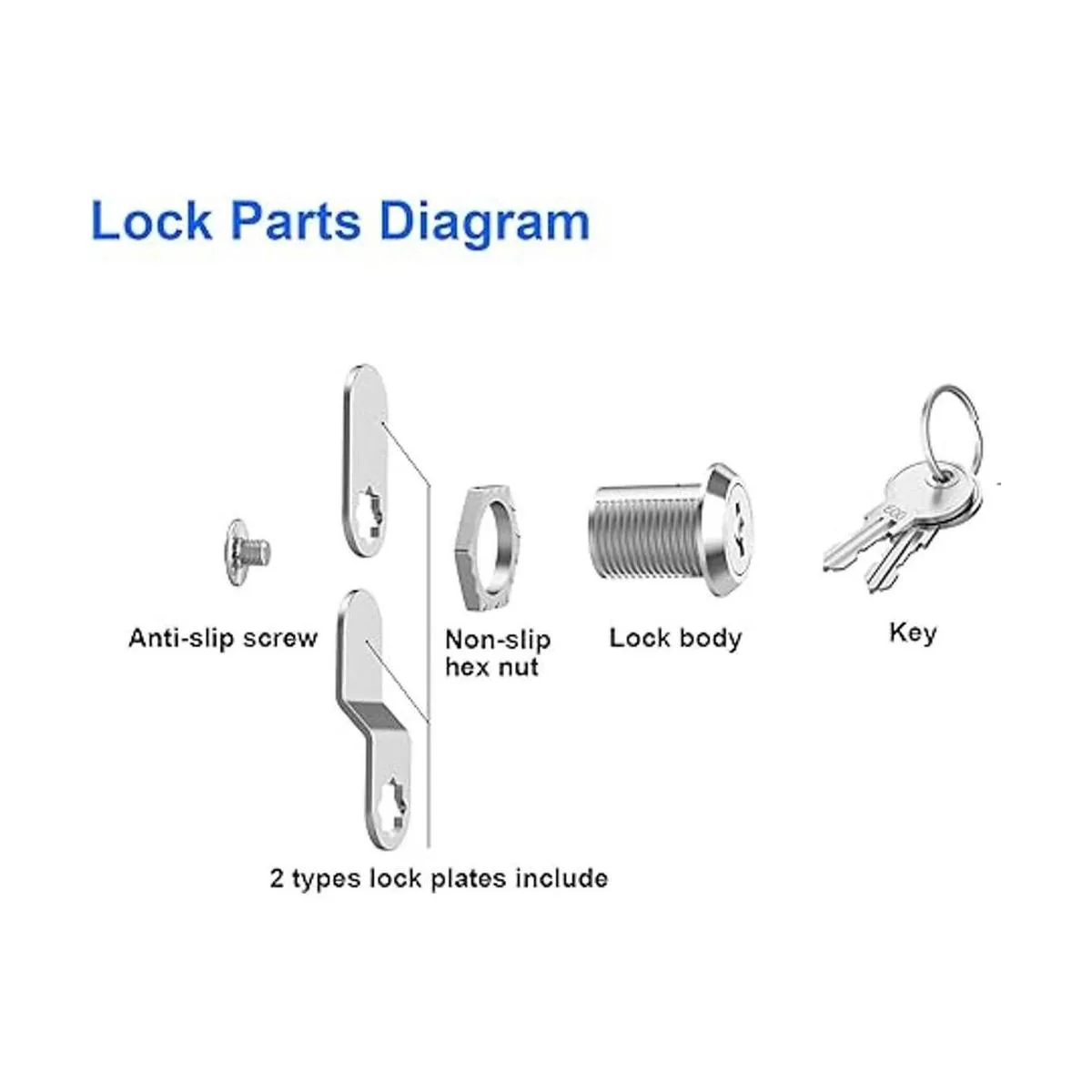 Calidad prémium: las cerraduras de leva están fundidas con precisión a partir de material de aleación de zinc cromado mejorado, superficie cromada, impermeable y resistente al óxido, duradero y duradero, es el mejor kit de repuesto de bloqueo para armarios, buzones, compartimentos de RV, cerraduras de caja de herramientas.