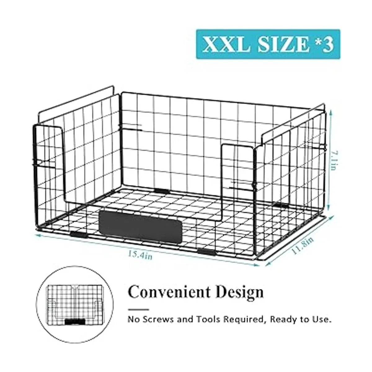 Lo que obtienes: recibirás 3 cestas de alambre. Tamaño de la cesta individual: 15.4 pulgadas de largo x 11.8 pulgadas de ancho x 7.8 pulgadas de alto. Tamaño de las 3 cestas apilables: 15.4 pulgadas de largo x 11.8 pulgadas de ancho x 21.3 pulgadas de alto. Si tienes alguna pregunta, no dudes en ponerte en contacto con nosotros y haremos todo lo posible para resolverlo.