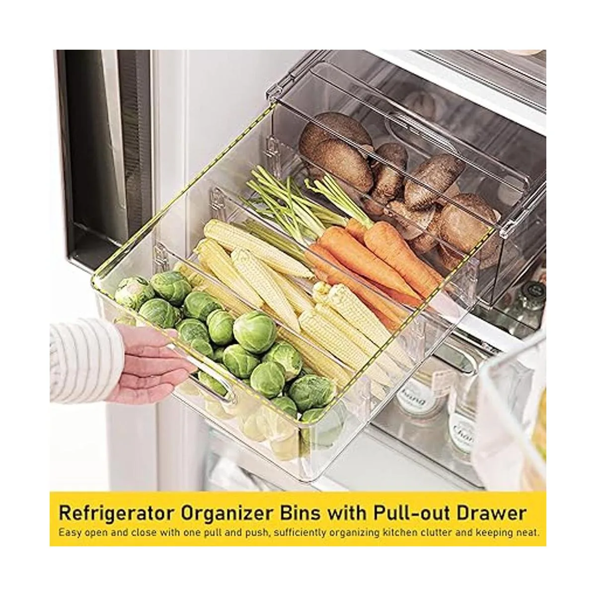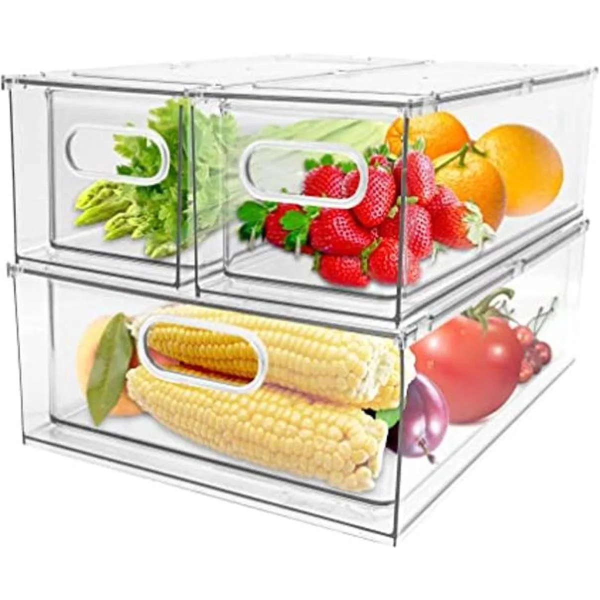 Paquete de 3 cubos organizadores de refrigerador con cajón extraíble, apilables, transparentes, contenedores de almacenamiento de frutas y verduras para organización de despensa de cocina 1 2 S