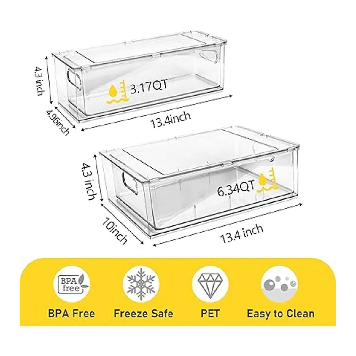 Materiales seguros: el cajón organizador de refrigerador está hecho de material PET de alta calidad, sin BPA. Resistencia a altas y bajas temperaturas, alta transparencia, buen brillo, almacenamiento 100 seguro para alimentos. Identifica el contenido sin abrir, di adiós a esas bolsas de plástico desechables baratas