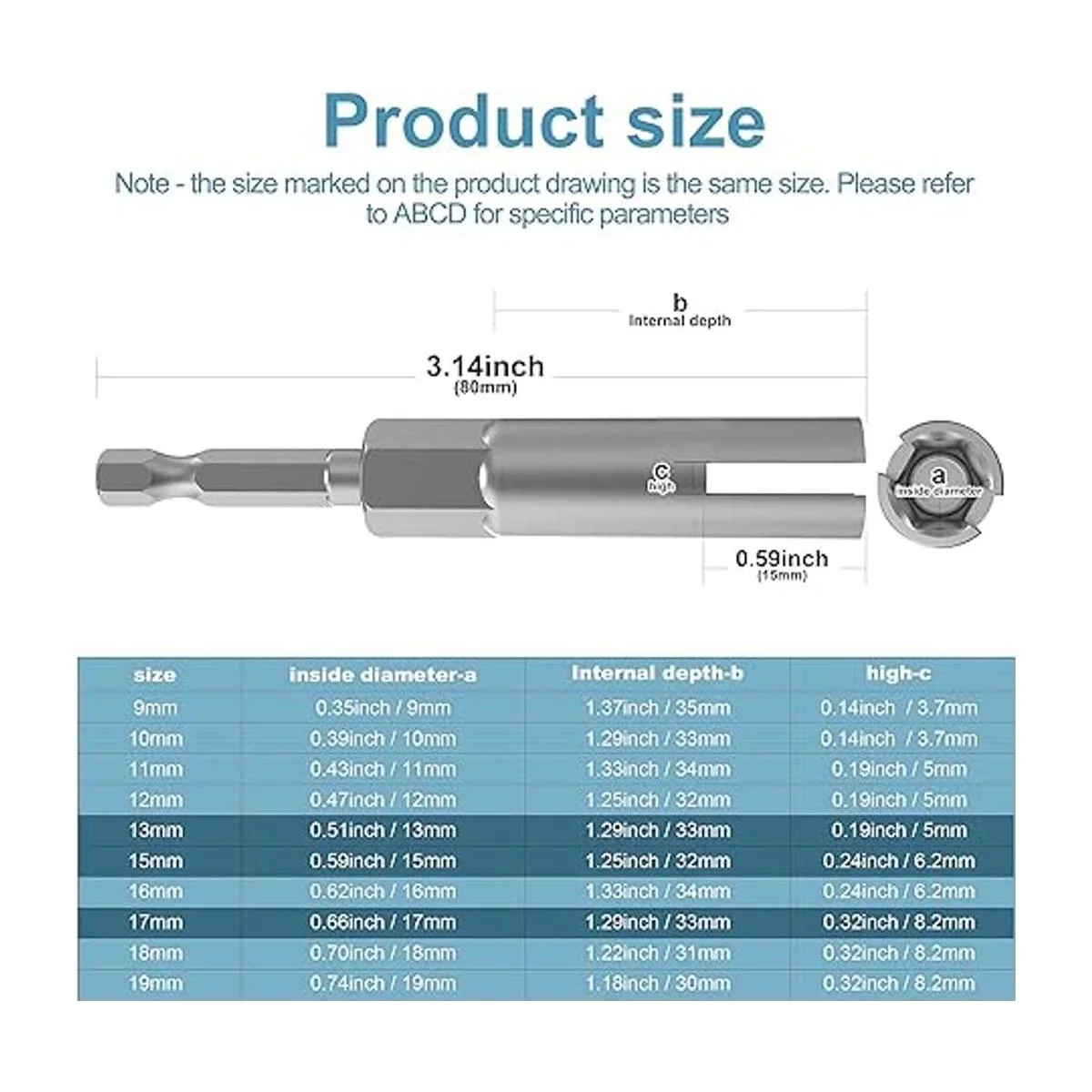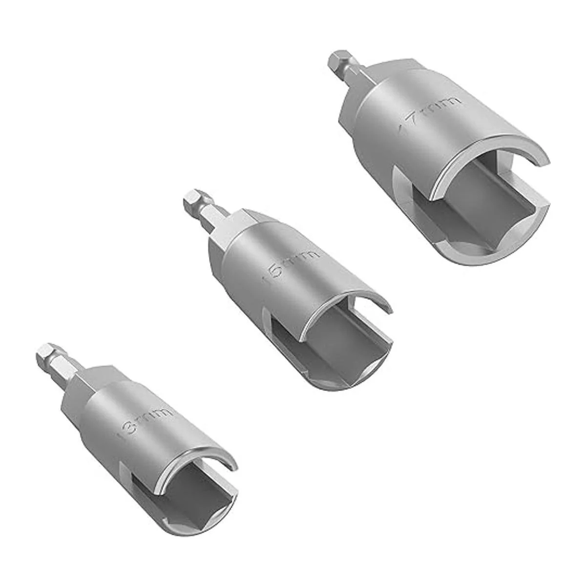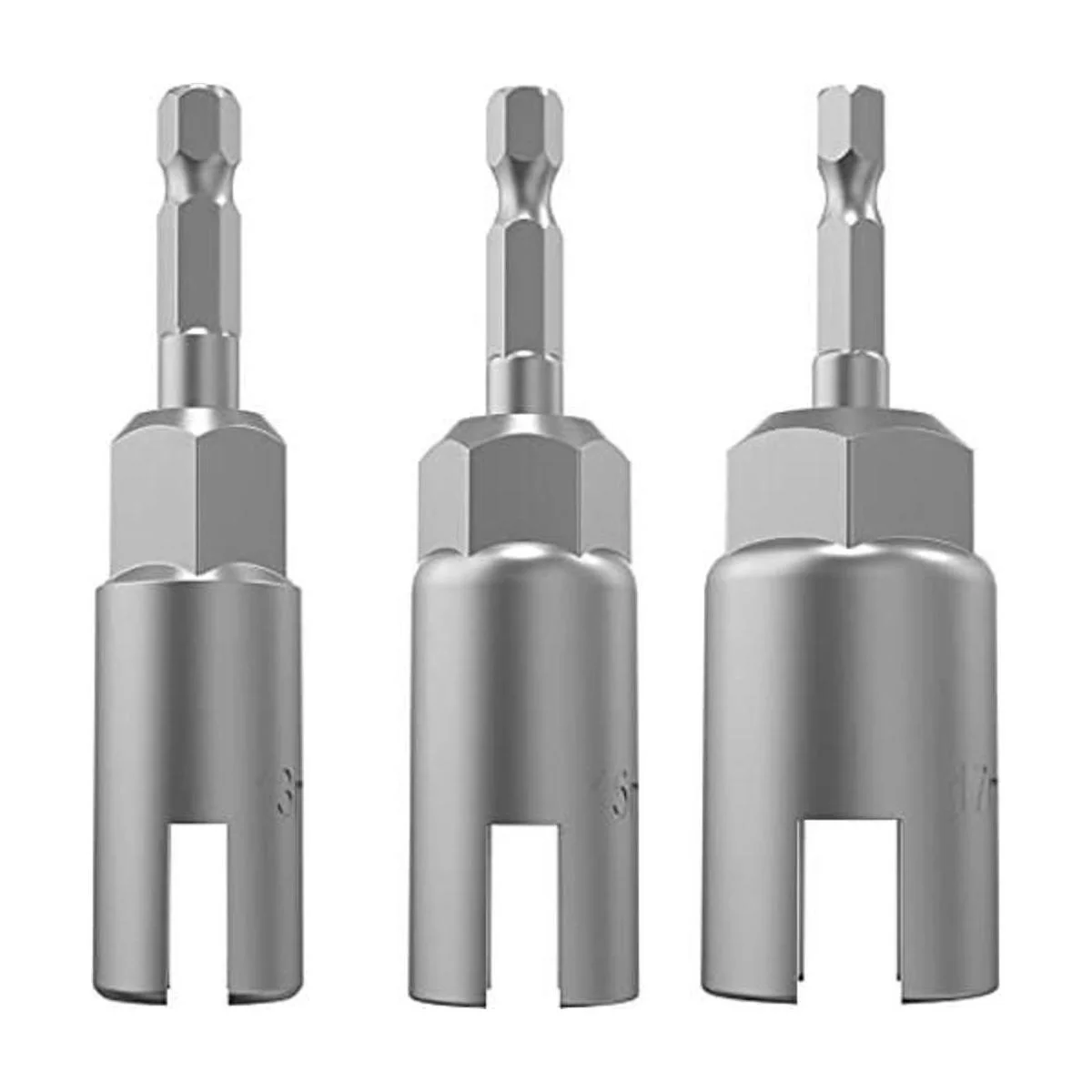 Paquete de 3 destornilladores de tuerca hexagonal de 14 de pulgada, kit de herramientas de taladro de tuerca de ala, kit de llave de manguito de taladro de tuerca ranurada, perno de gancho en forma de C 0.512 in, 0.591 in, 0.669 in
