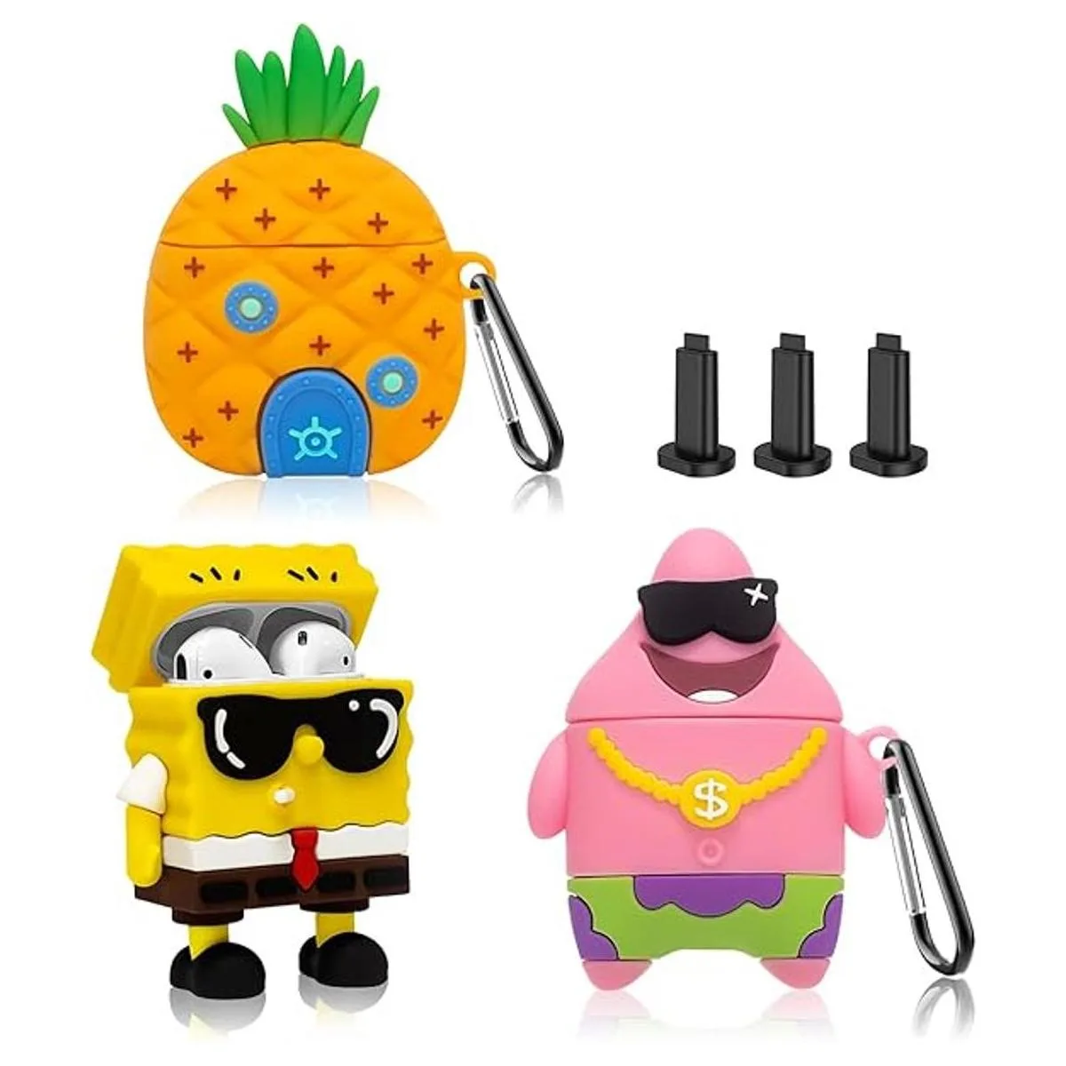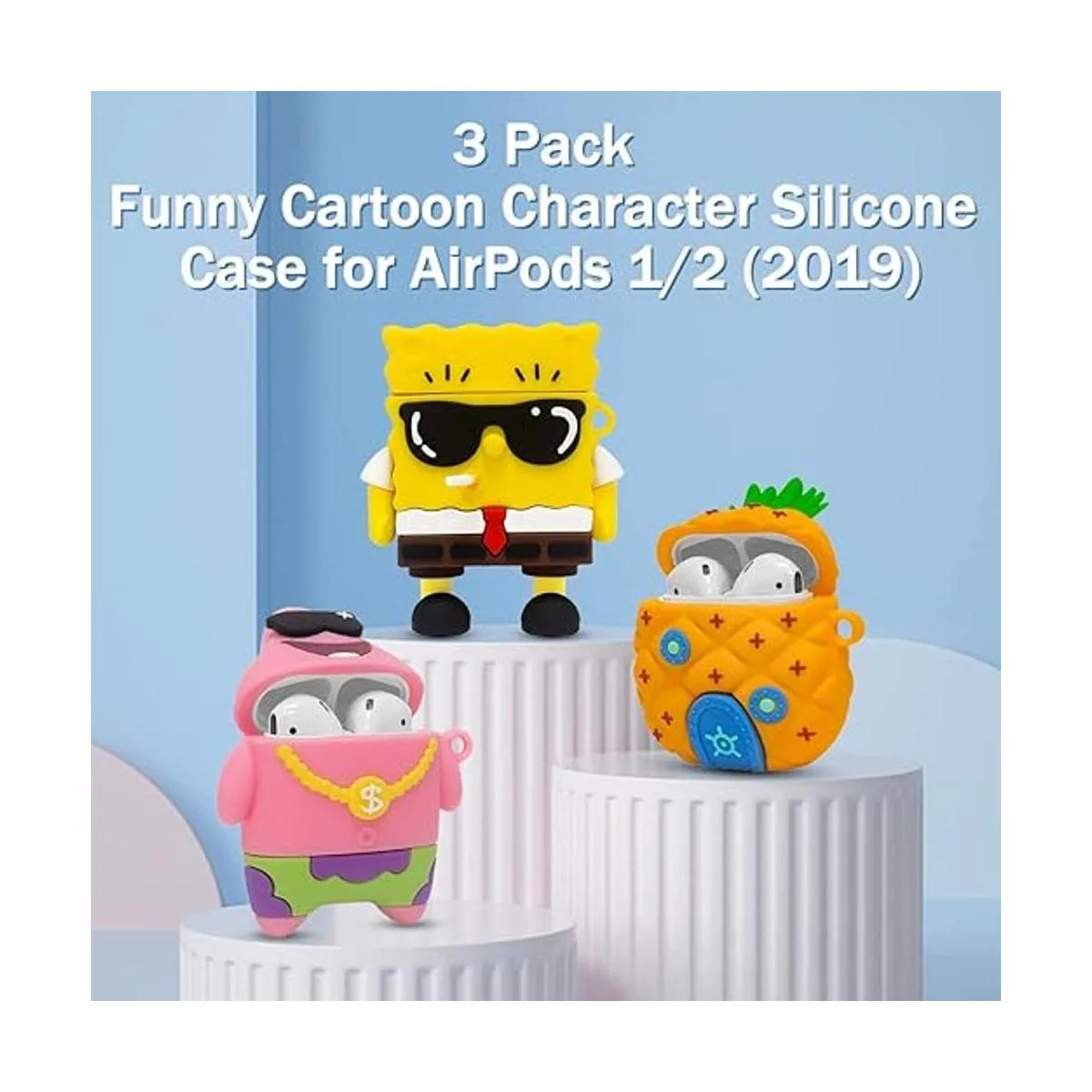Paquete de 3 Divertida funda para AirPod 21, diseño de personajes de dibujos animados 3D para Airpods 1 y 2, funda Kawaii AirPods 12 para hombres y niños, funda protectora de silicona con llavero accesorios