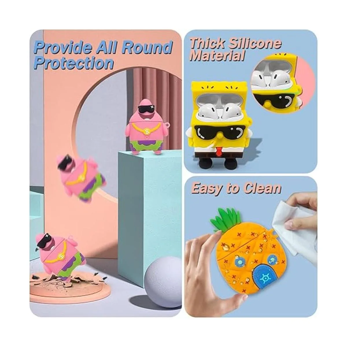 Modelos compatibles: bonita y divertida funda protectora de silicona con personajes de dibujos animados 3D compatible con AirPods 2 y AirPods 1.