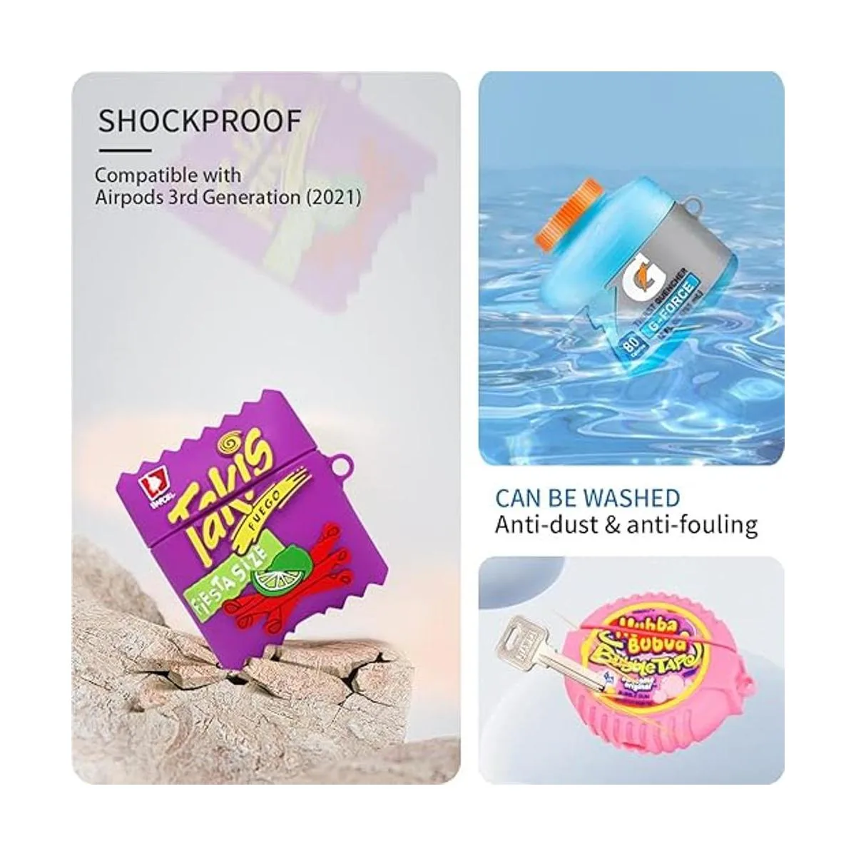 Paquete de 3 Funda bonita para Airpods de 3 generación, agua deportivapapas Tekis cápsulas de goma de mascar 3 funda de silicona divertida 3D diseño de alimentos de dibujos animados para Airpods de 3 generación para niños y niñas