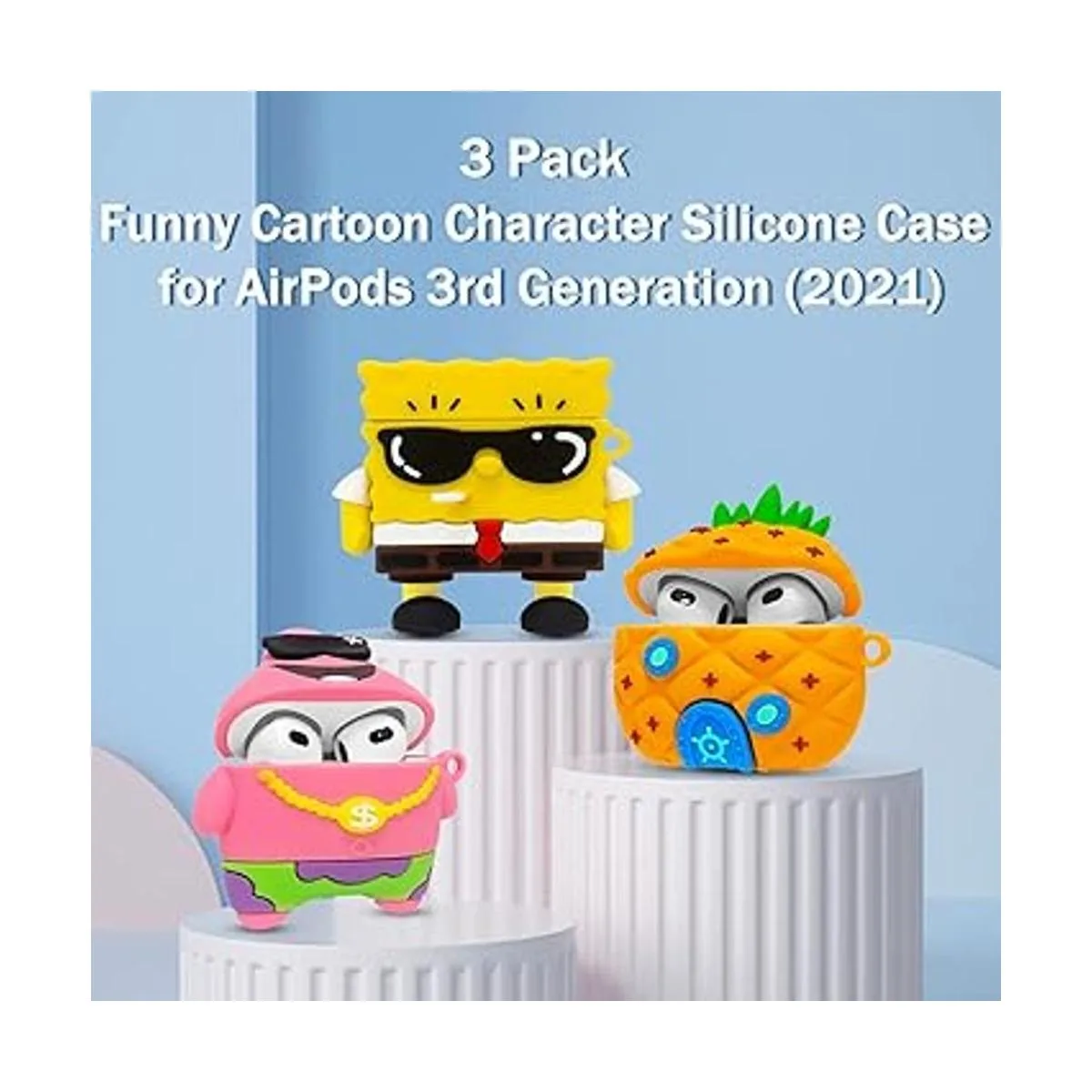 Paquete de 3 Funda divertida para AirPods de 3 generación, funda protectora de silicona con personajes de dibujos animados 3D para Airpods 3 Kawaii Airpods 3 2021 para hombres y niños, funda protectora de silicona con llavero accesorios