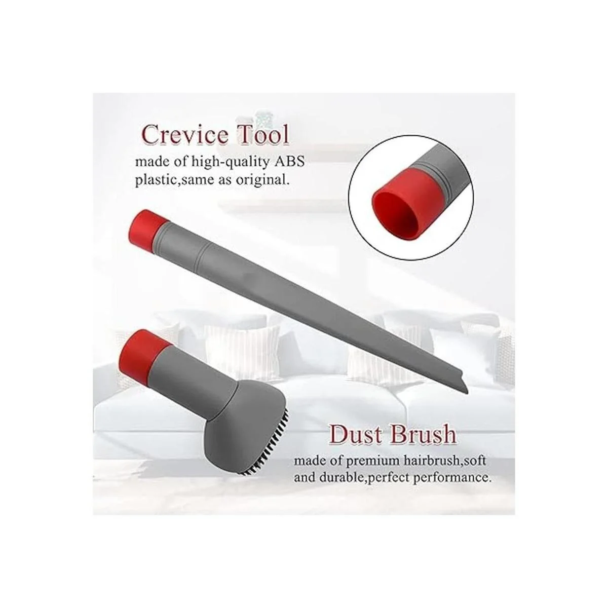 Accesorios de cepillo de polvo: los cepillos de polvo están hechos de cerdas de pelo de caballo de alta calidad, pueden girar libremente. Se utiliza para limpiar superficies suaves o irregulares sin dañar el objeto. Como cortinas, sofás, equipos de iluminación, pelo de mascotas, etc.