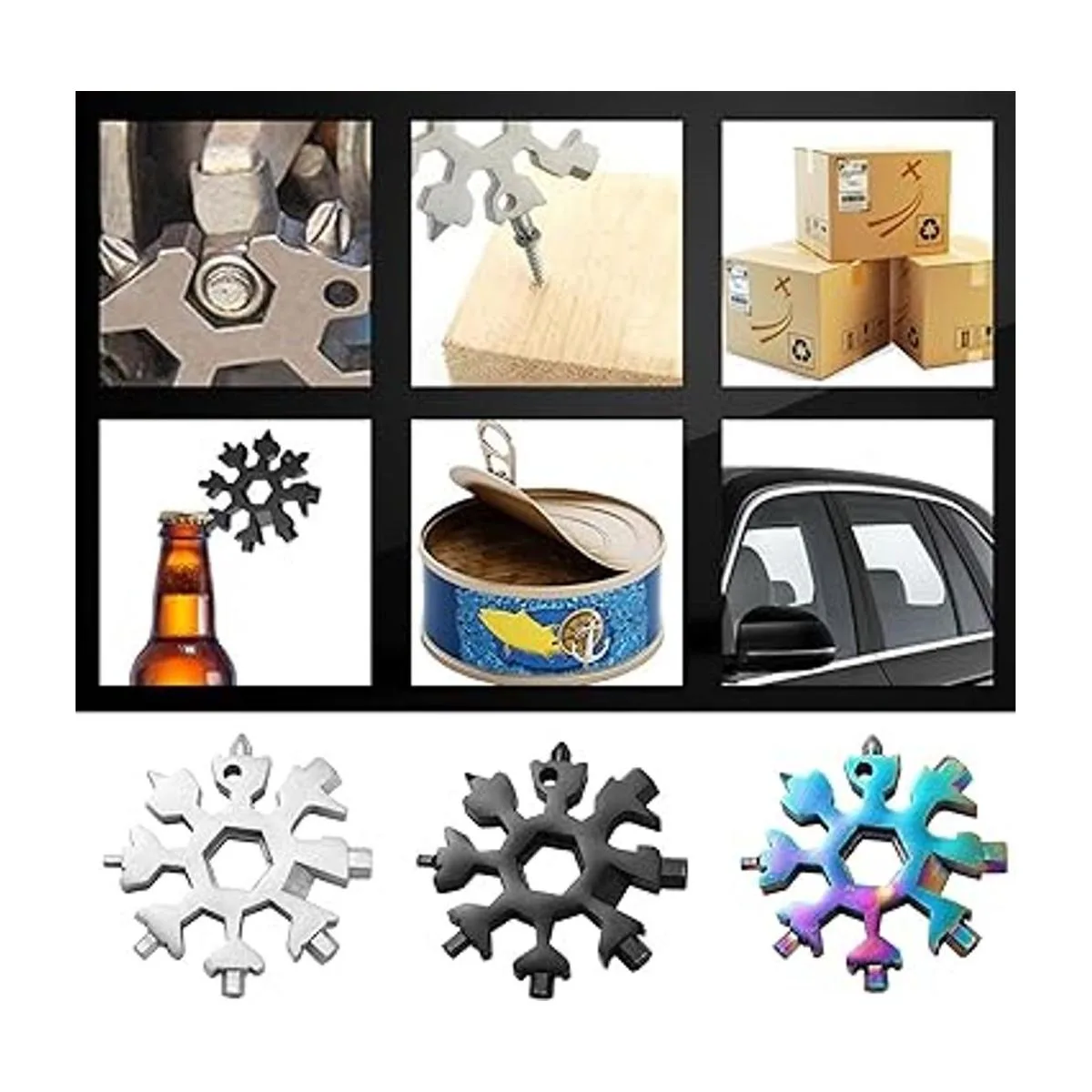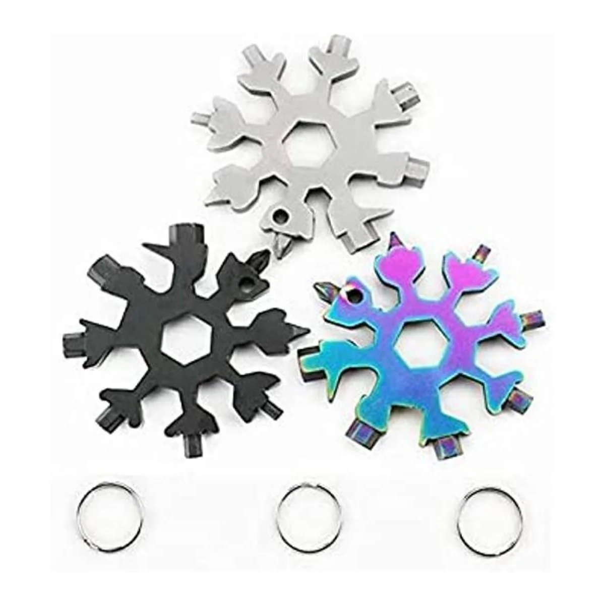 Paquete de 3 herramientas multiherramienta de copo de nieve 18 en 1, copo de nieve de acero inoxidable, multiherramienta de abrebotellas multiherramientakit de destornillador Phillips planollave, multiherramienta de acero inoxidable 18 en 1 estándar, inoxidable