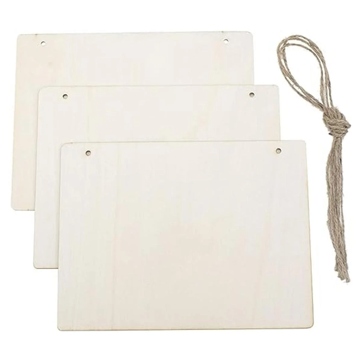 Paquete de 3 letreros de madera en blanco para manualidades sin terminar con tablero de madera con agujero DIY puerta decoración de pared decoración de vacaciones