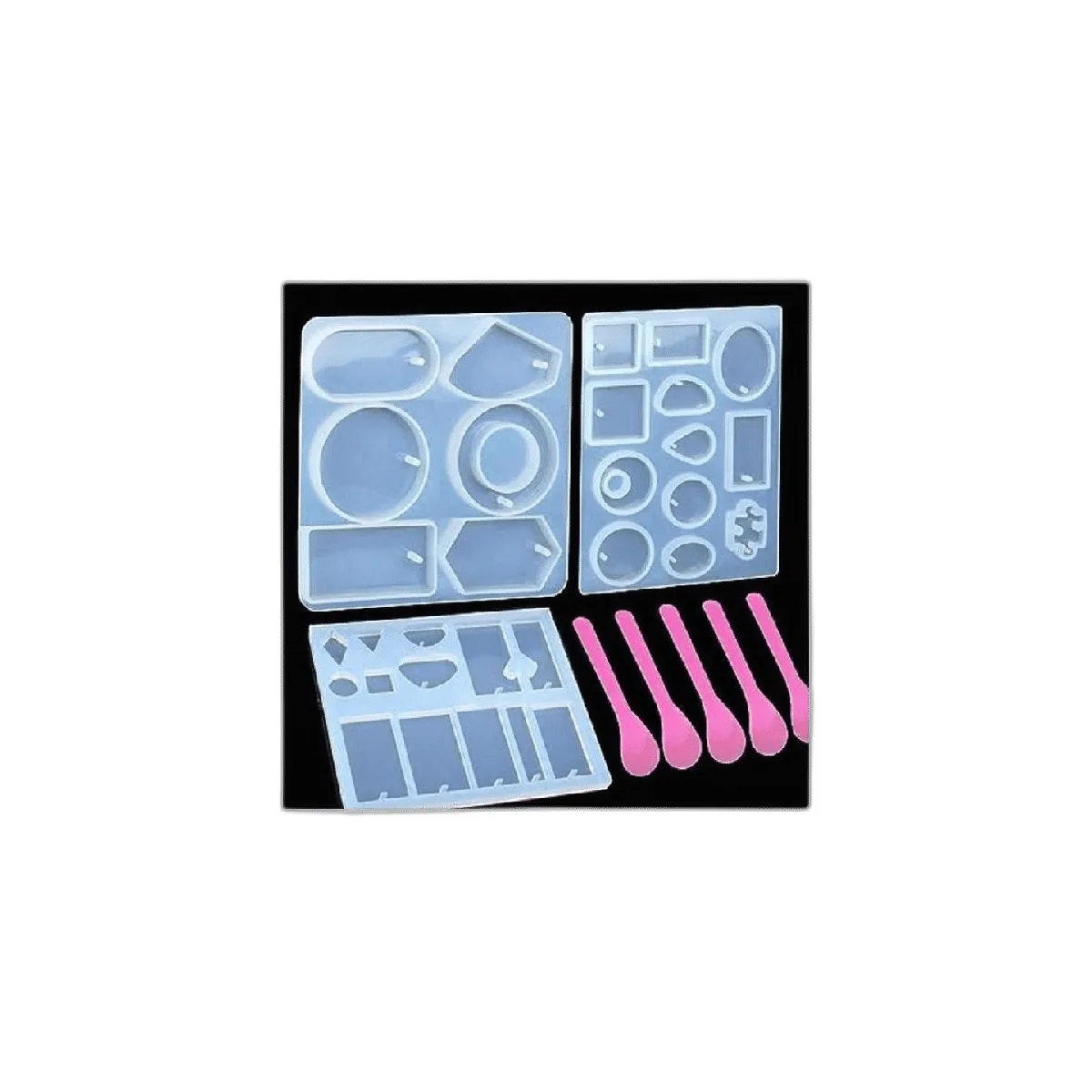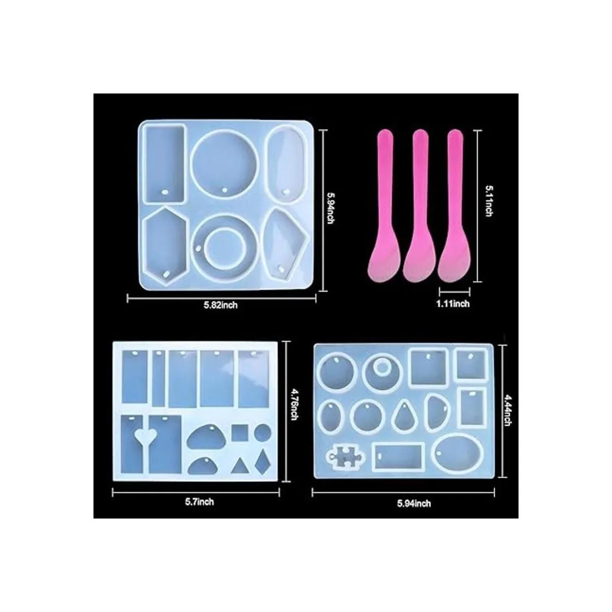 Paquete de 3 moldes de fundición de joyas, moldes de resina epoxi colgante LEOBRO, moldes de silicona para resina, con 5 cucharas de mezcla, moldes de llavero para resina epoxi, aretes, collar, llavero para fabricación de joyas