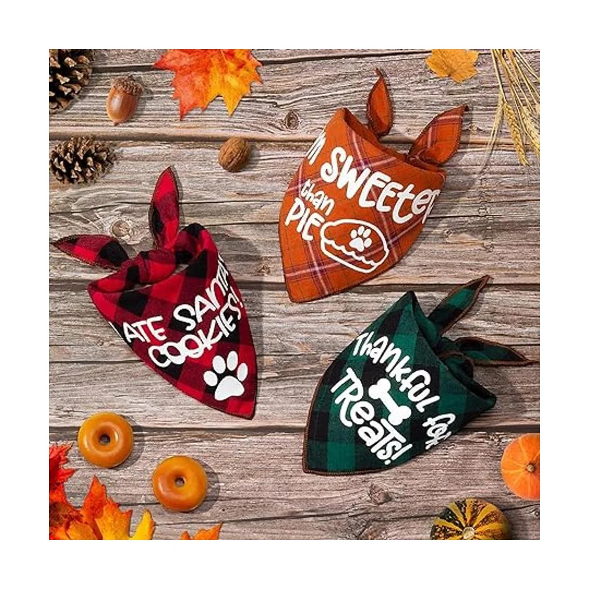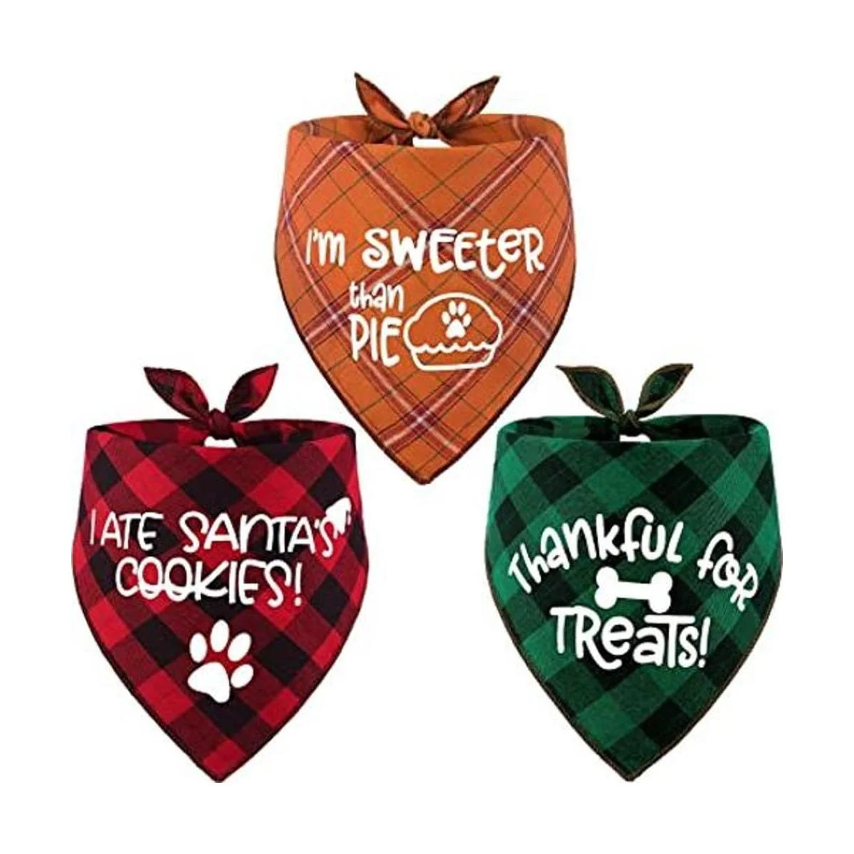 Paquete de 3 pañuelos de Acción de Gracias, diseño clásico de otoño a cuadros, Halloween, Navidad, otoño, triángulo, bufanda, baberos, pañuelos, accesorios de decoración para mascotas para perros pequeños a grandes, gatos y mascotas