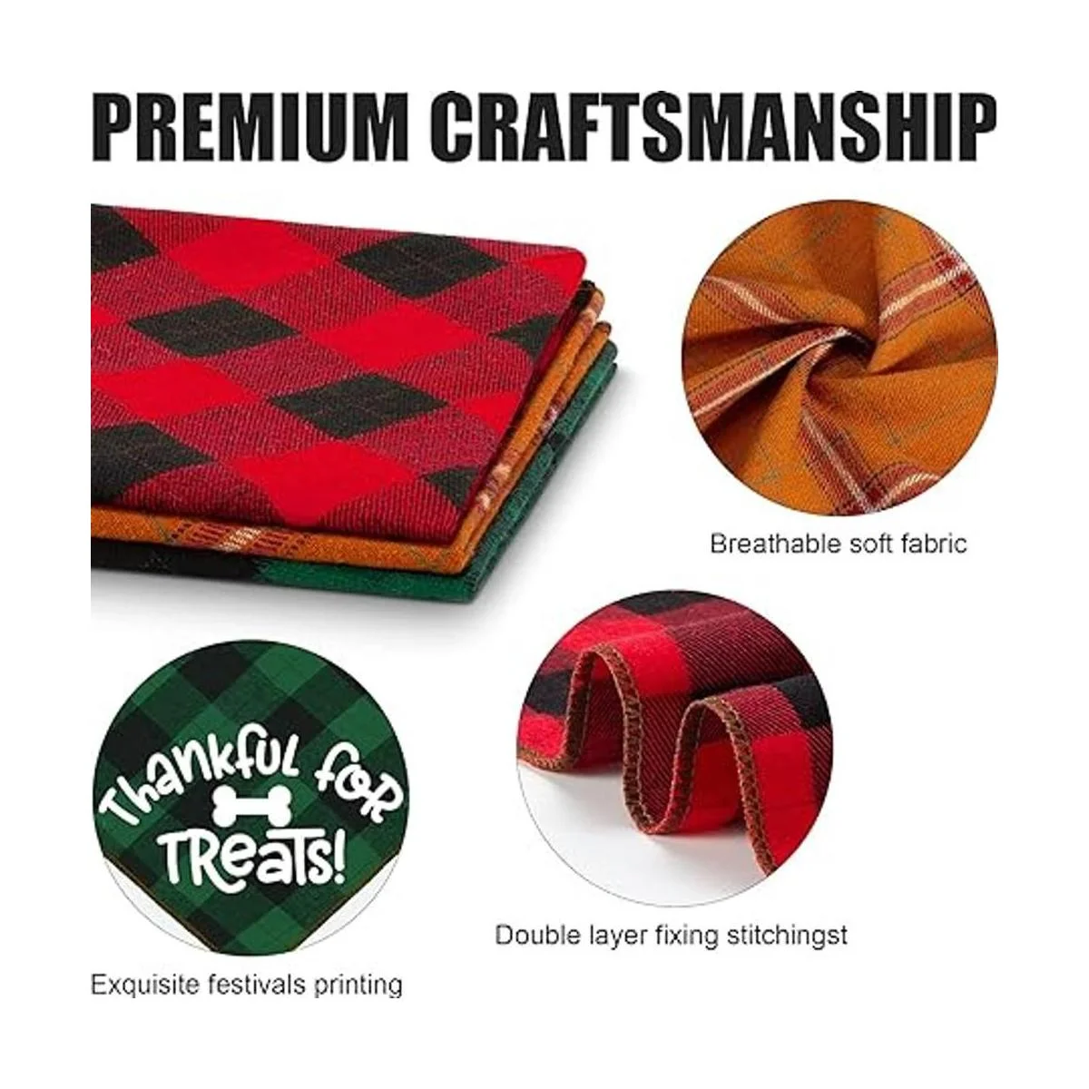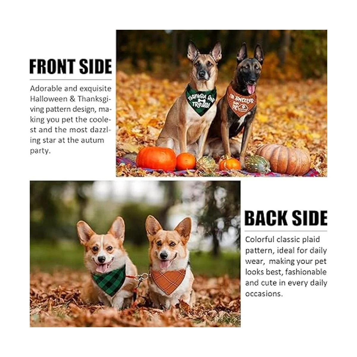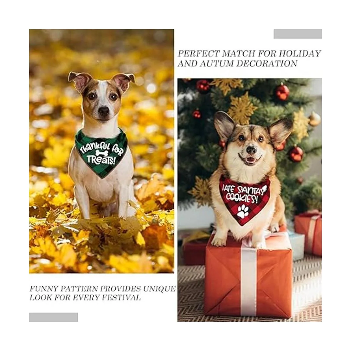 Múltiples ocasiones: la bandana para perro no solo es ideal para Halloween, Acción de Gracias, Navidad, fiesta de otoño e invierno, sino también el patrón clásico de celosía en la parte posterior, también es adecuado para el uso diario, sesión de fotos, Año Nuevo, fiestas de cumpleaños, bodas y cada ocasión. Estas bandanas para cachorros son la manera perfecta de hacer que tu mascota destaque. Con un poco de esfuerzo, las mascotas complementarán instantáneamente tu propio atuendo.