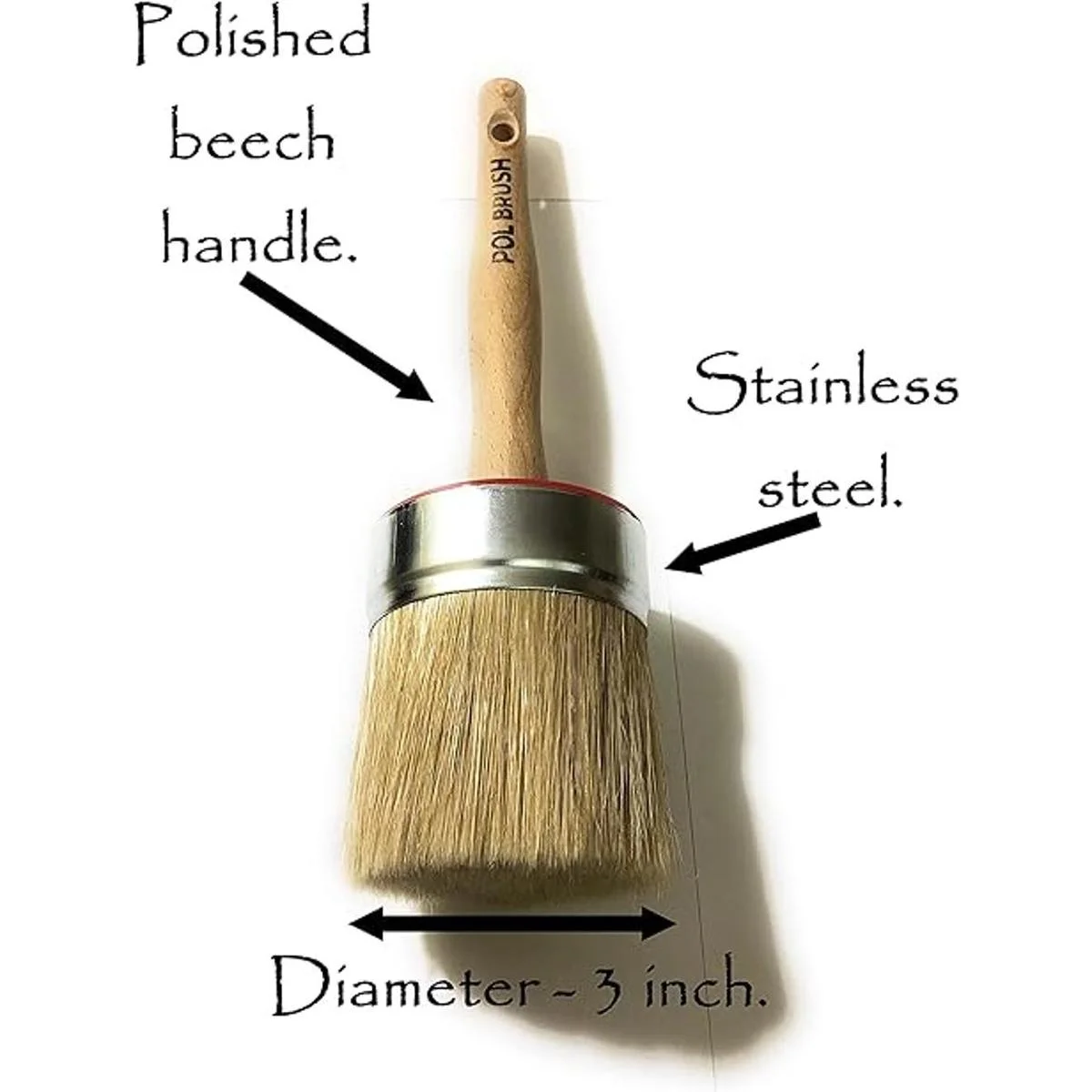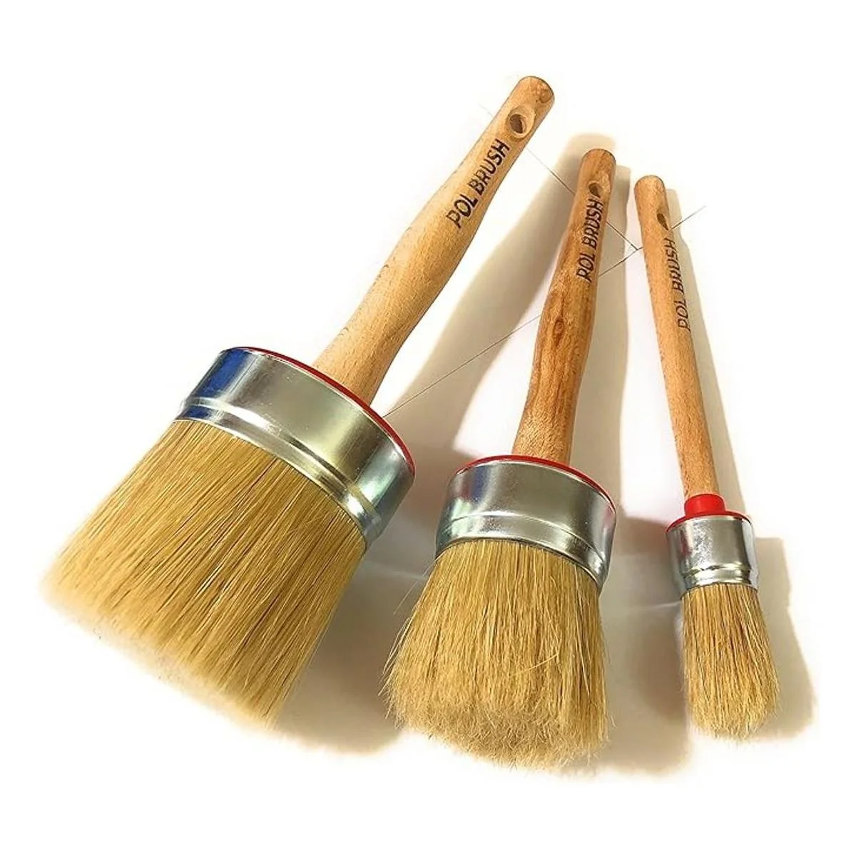 Paquete de 3 pinceles redondos profesionales europeos XXL mango de madera de cerdas naturales para acrílico, tiza, aceite, acuarela, gouache, manchas, barniz, cera. para plantillas, arte, niños, paredes, detalles.