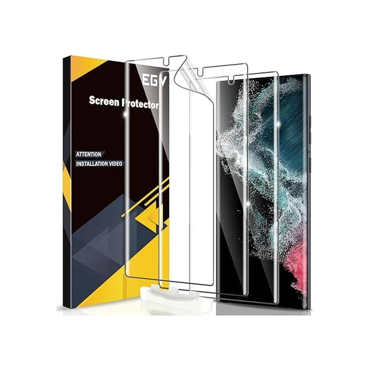 Paquete de 3 Protector de pantalla EGV para Samsung Galaxy S22 Ultra 5G, película de TPU suave curvado 3D compatible con lector de huellas dactilares a prueba de arañazos herramienta de alineación S22 Ultra protector de pantalla transparente