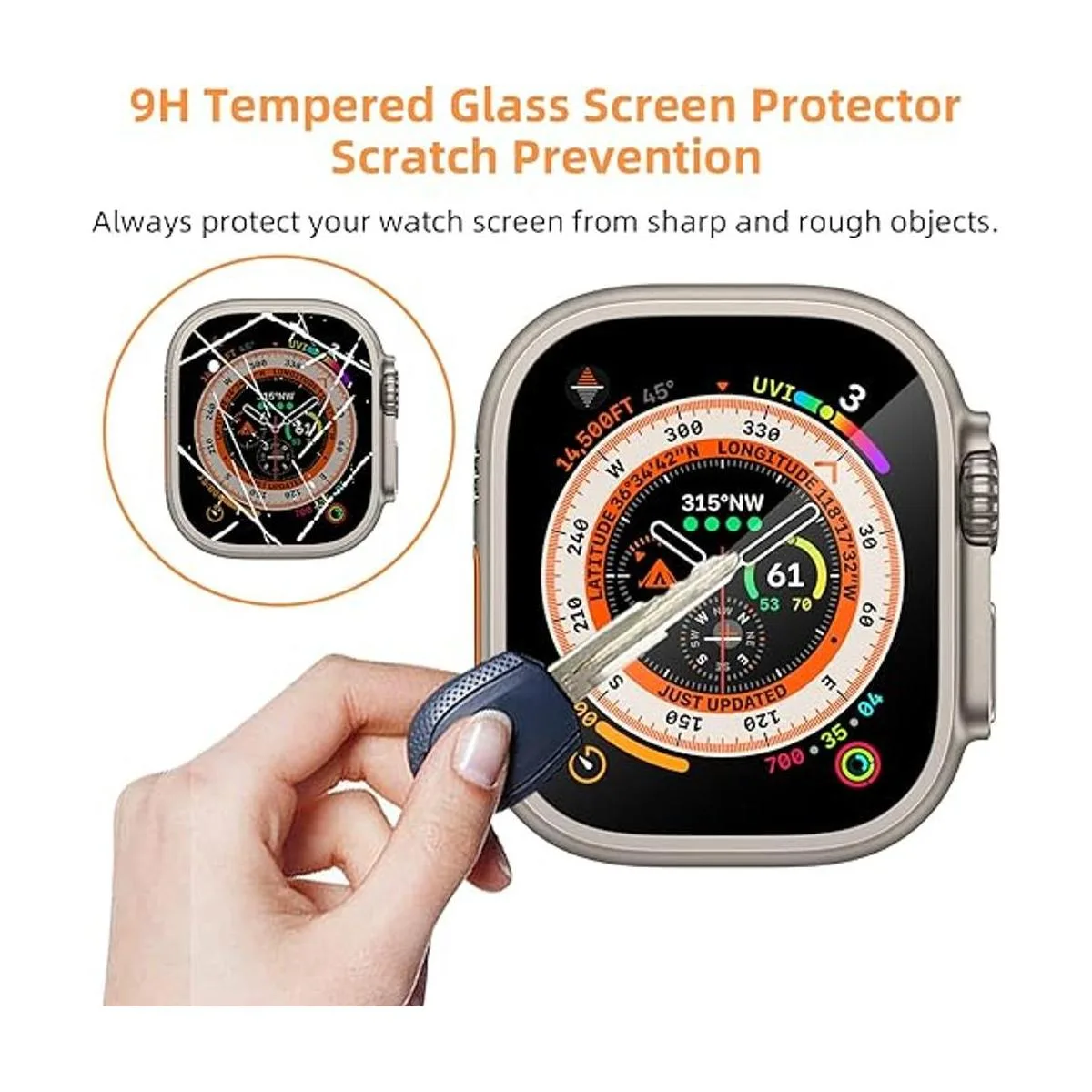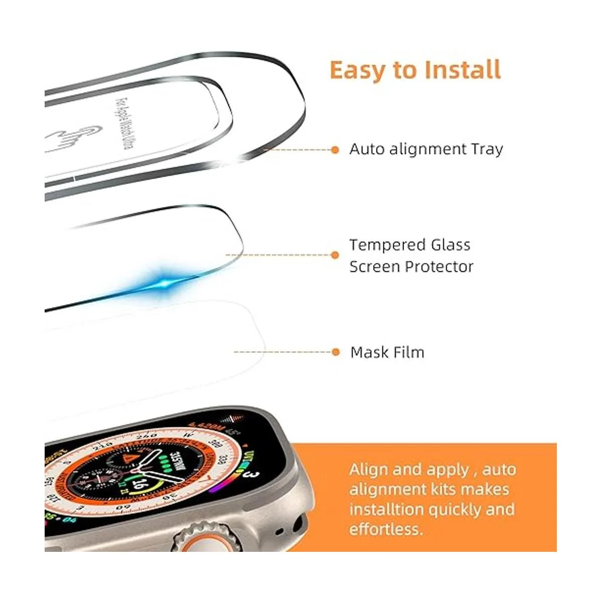 Protector de pantalla para iWatch Ultra de 1.929 in: Hecho de vidrio templado de dureza 9H de grado militar, que puede proteger tu pantalla de arañazos, colisiones, caídas. Película ultrafina de alto ajuste que cubre perfectamente las esquinas y los bordes de tu reloj, no se deforma ni se cae fácilmente.