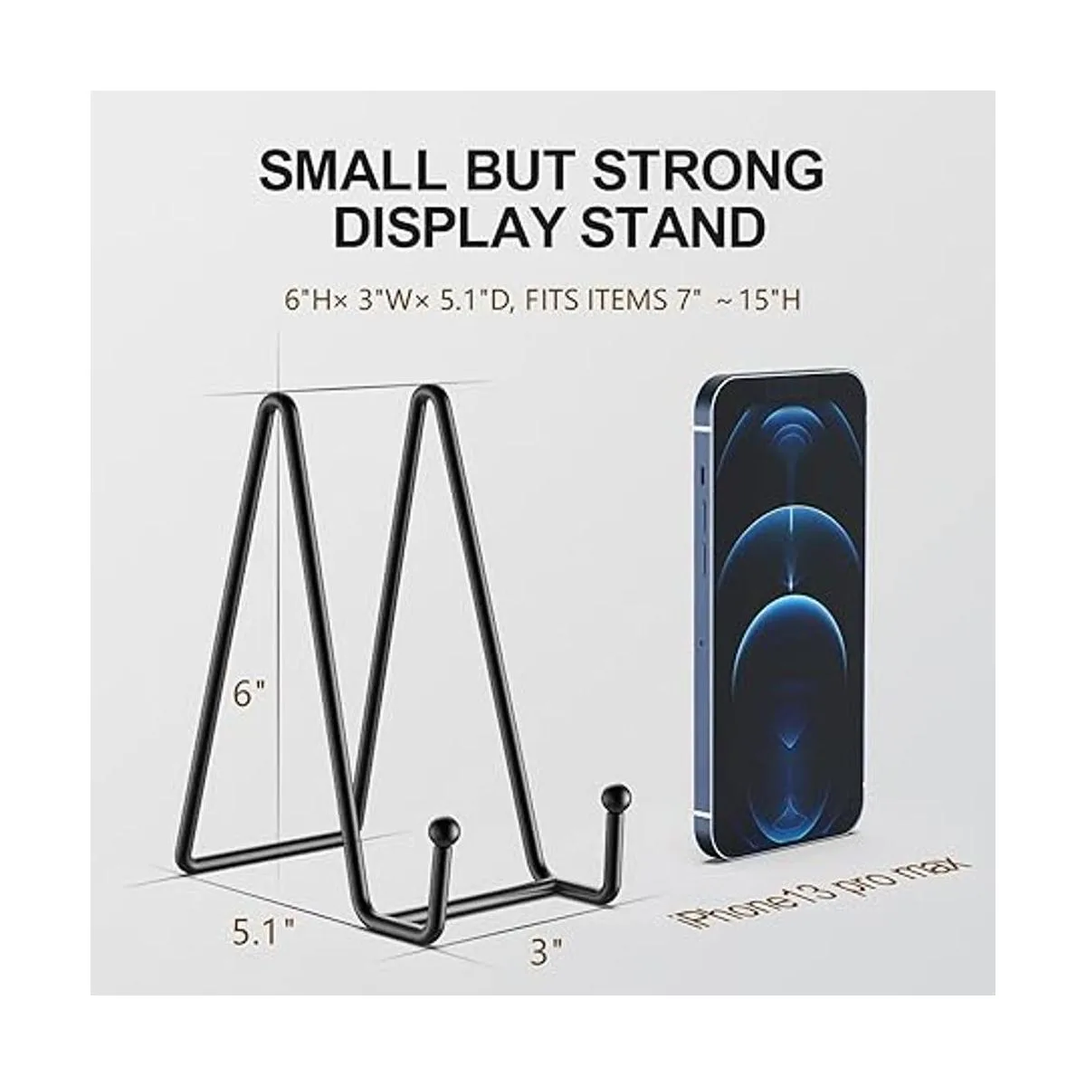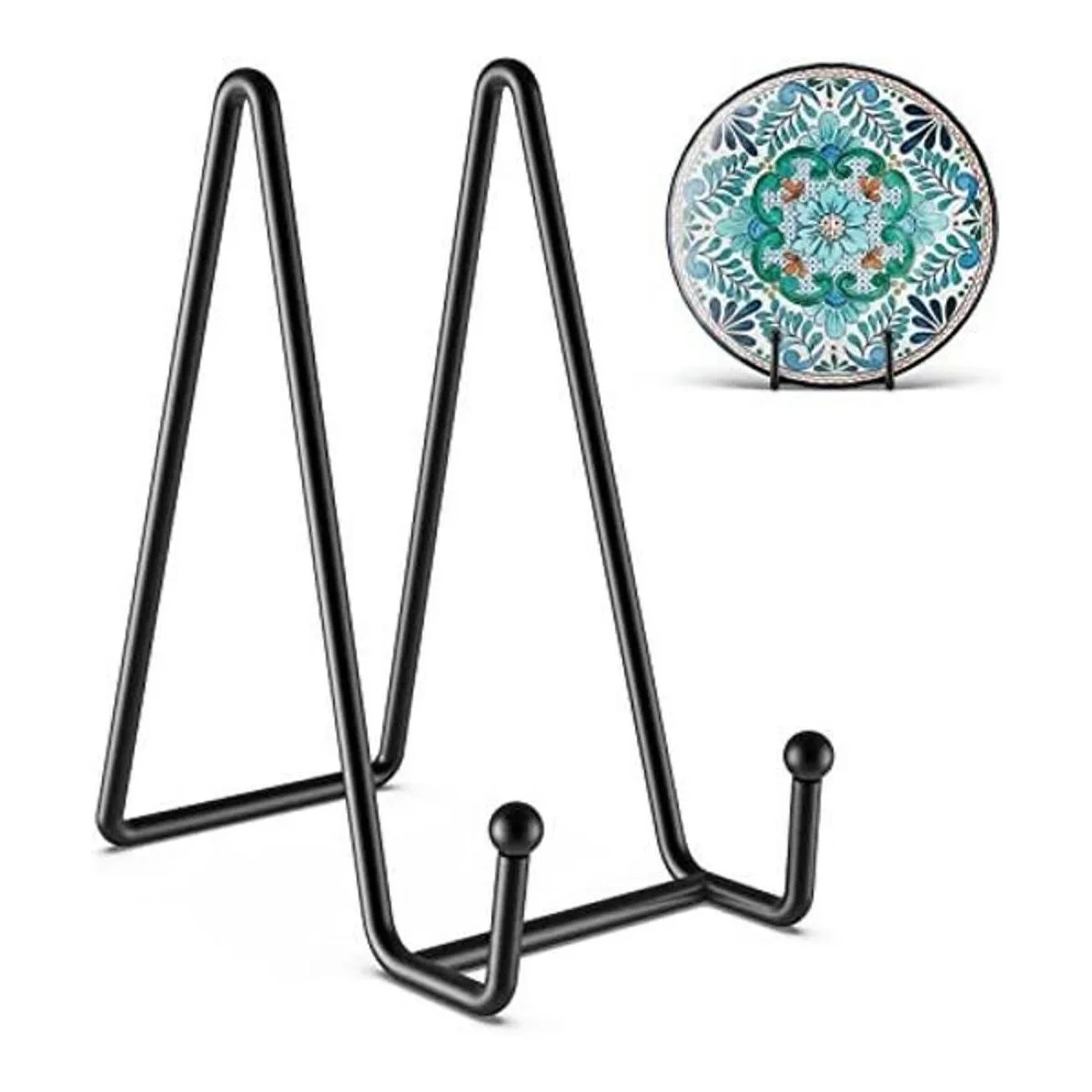 Calidad prémium: 100 hecho de hierro con un acabado negro, los caballetes para exhibición son robustos y resistentes a la corrosión. Puede sujetar de forma segura tu cuenco, placa o álbumes. No hay necesidad de preocuparse si se caen y se rompen.