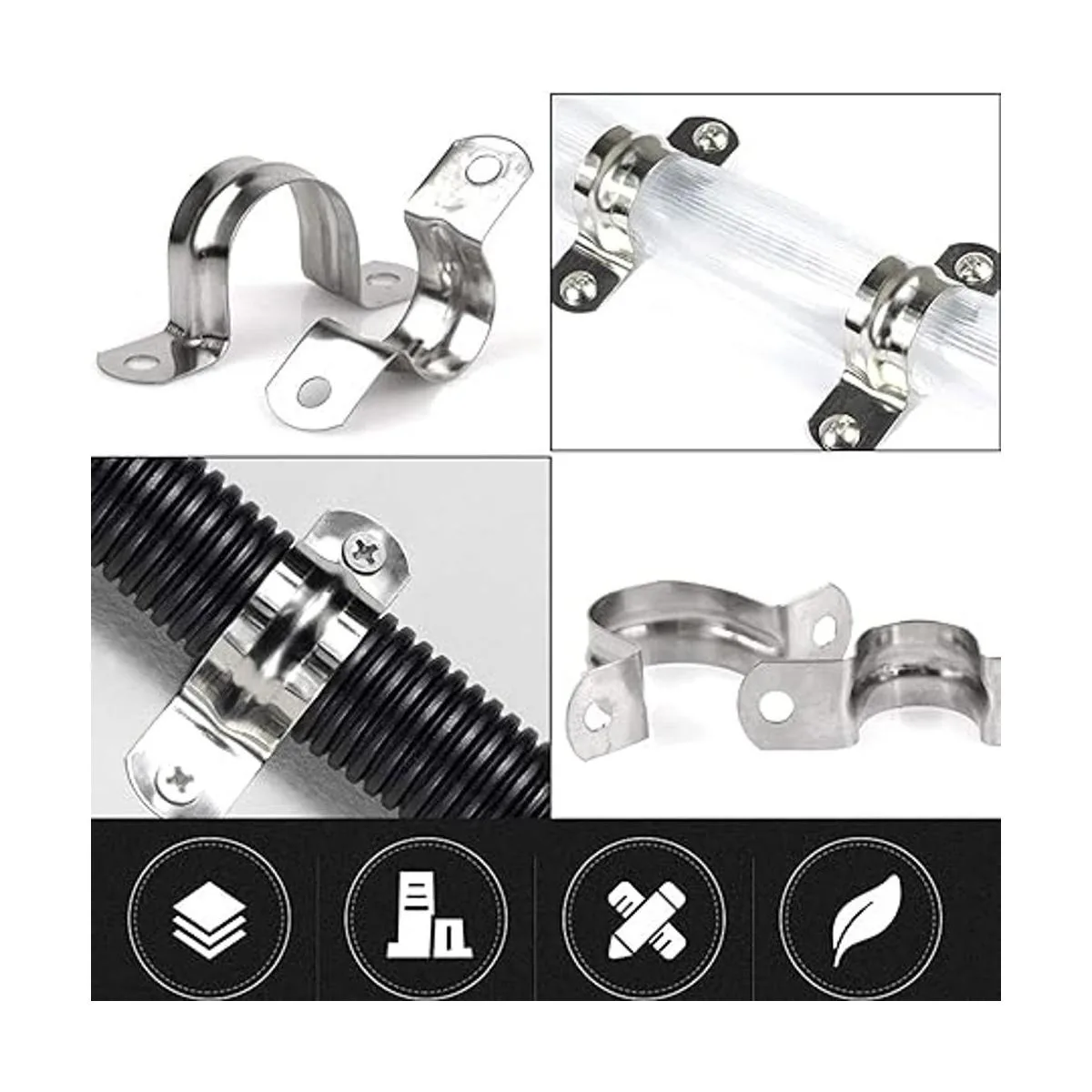 Alta calidad: la correa rígida para tubo está hecha de material de acero inoxidable 304 de alta calidad con un grosor rígido de 0.024 in. Resistente a la sal, antioxidante, anticorrosión, impermeable, resistente al aceite. Las abrazaderas son resistentes, fuertes y fiables.