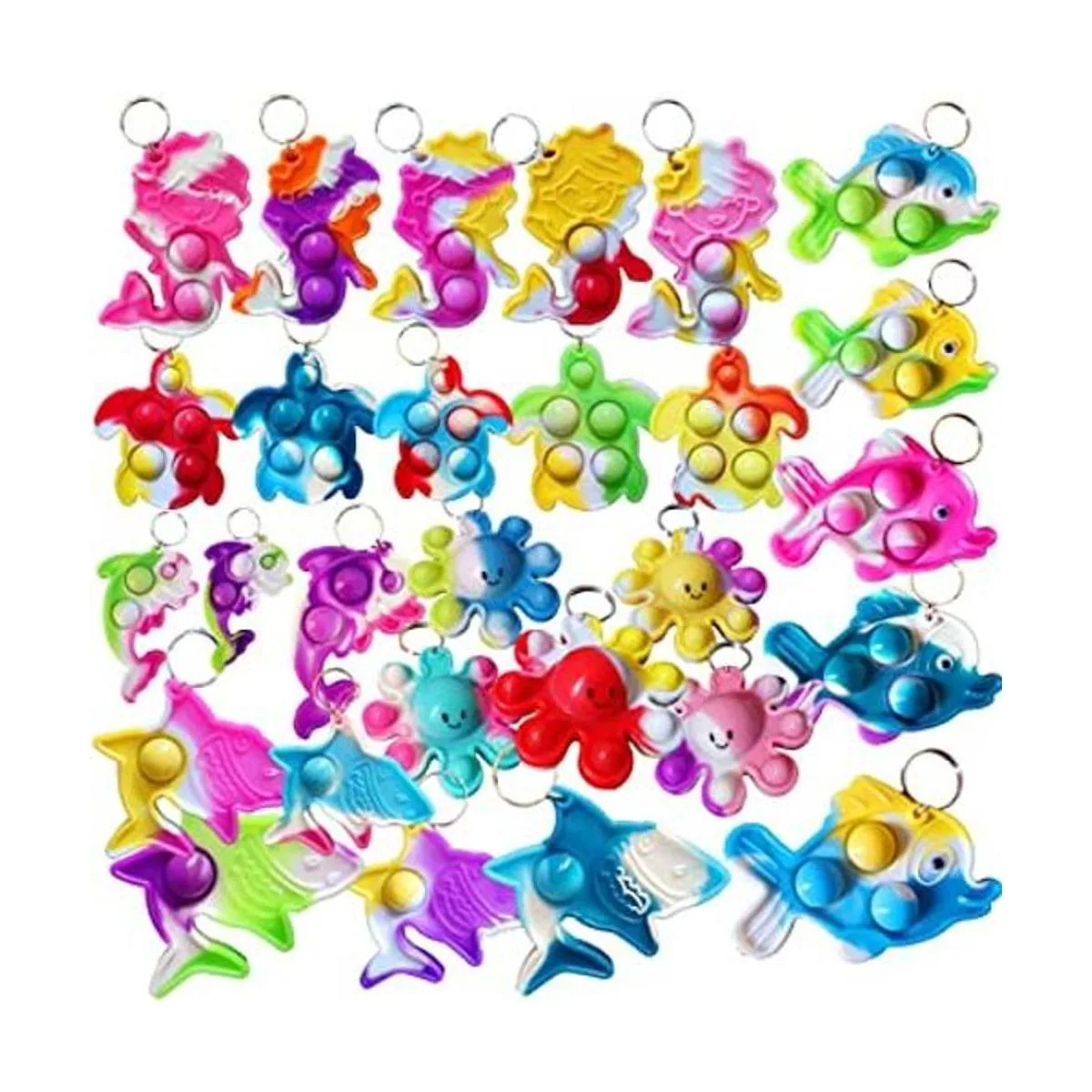Paquete de 30 divertidos juguetes únicos de burbujas surtidos para niños, niños, aula, estudiantes, regalo de profesores, recuerdos de fiesta de cumpleaños