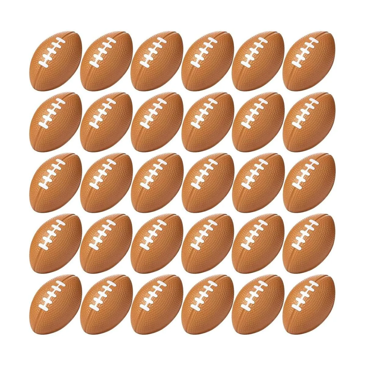 Lo que obtienes: recibirás 30 paquetes de mini balones de fútbol marrón, diseño vívido y realista, parece como un fútbol real posible, hecho de espuma elástica, lindo e interesante para jugar