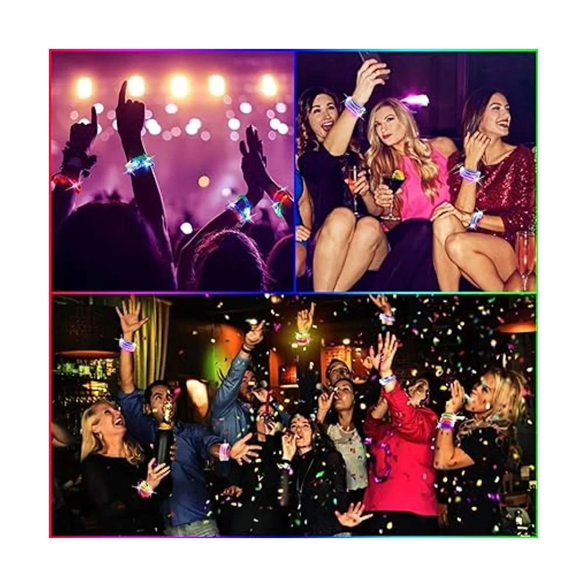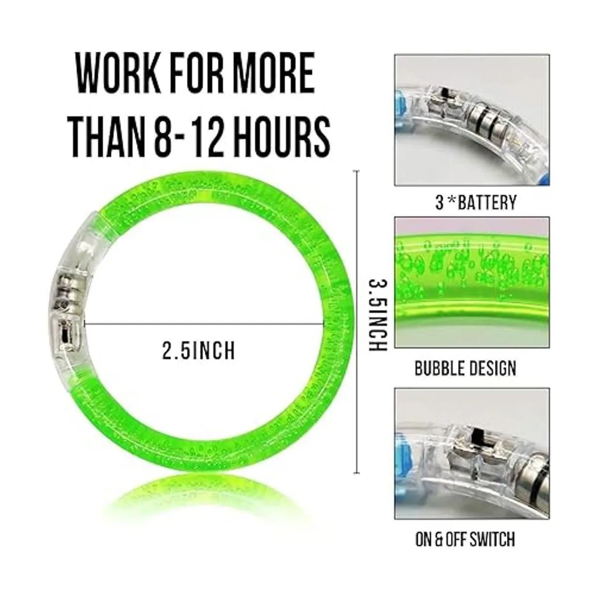 Aplicación multiescena: pulsera de burbujas LED, pulsera flash en la oscuridad tiene una variedad de colores, las luces coloridas parpadean constantemente, al igual que el arco iris se ilumina en la oscuridad, te sigue por las sombras, lo que te hace el centro de atención del escenario, ideal para entretenimiento, fiestas rave, cumpleaños, festivales, bodas, actividades nocturnas, fogatas, discotecas, carnavales, Halloween, eventos en interiores y exteriores, fiestas rave y más para entretenimiento o celebraciones.