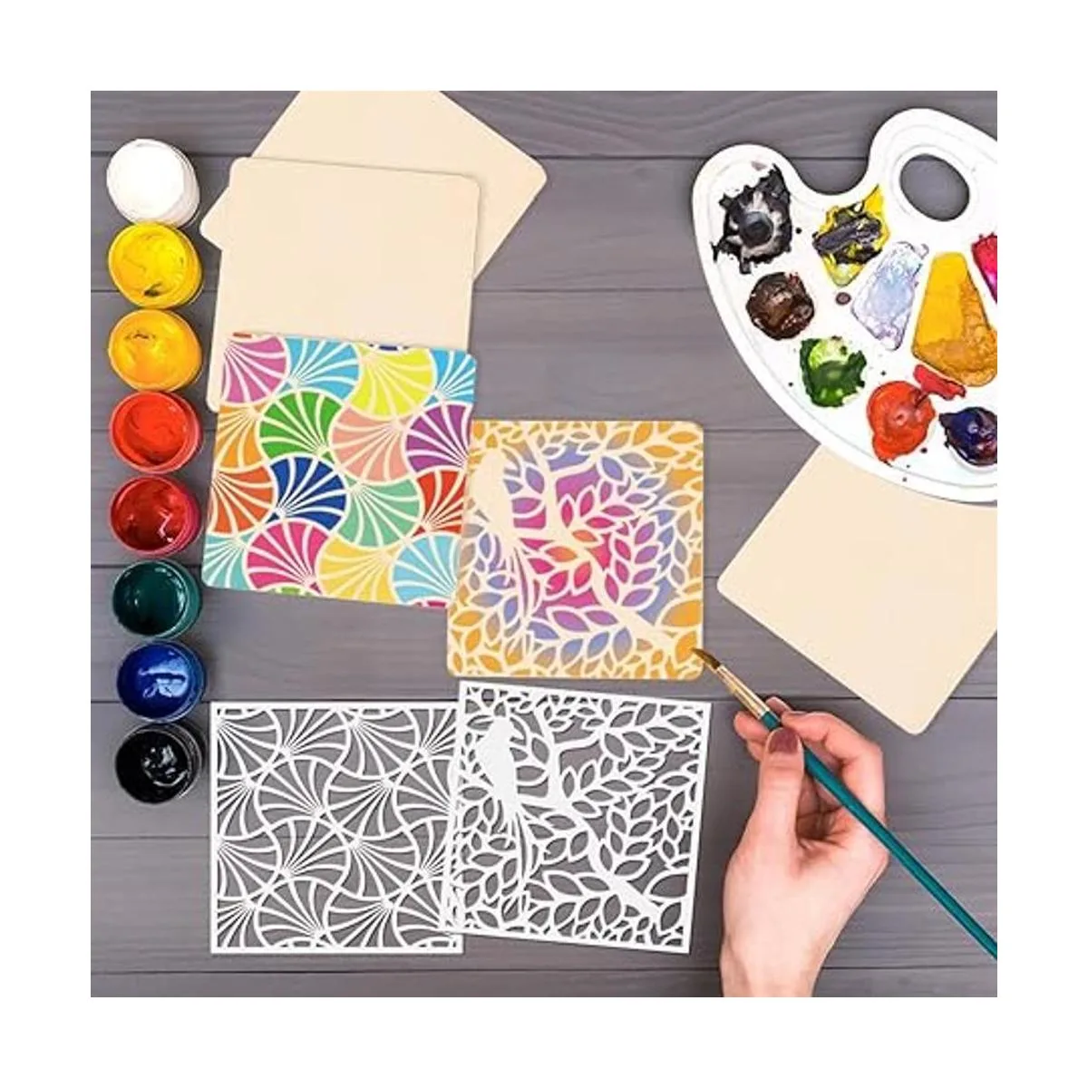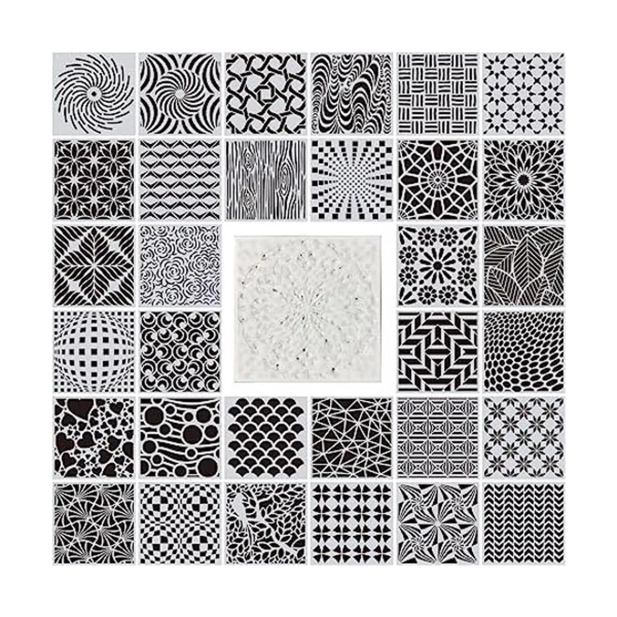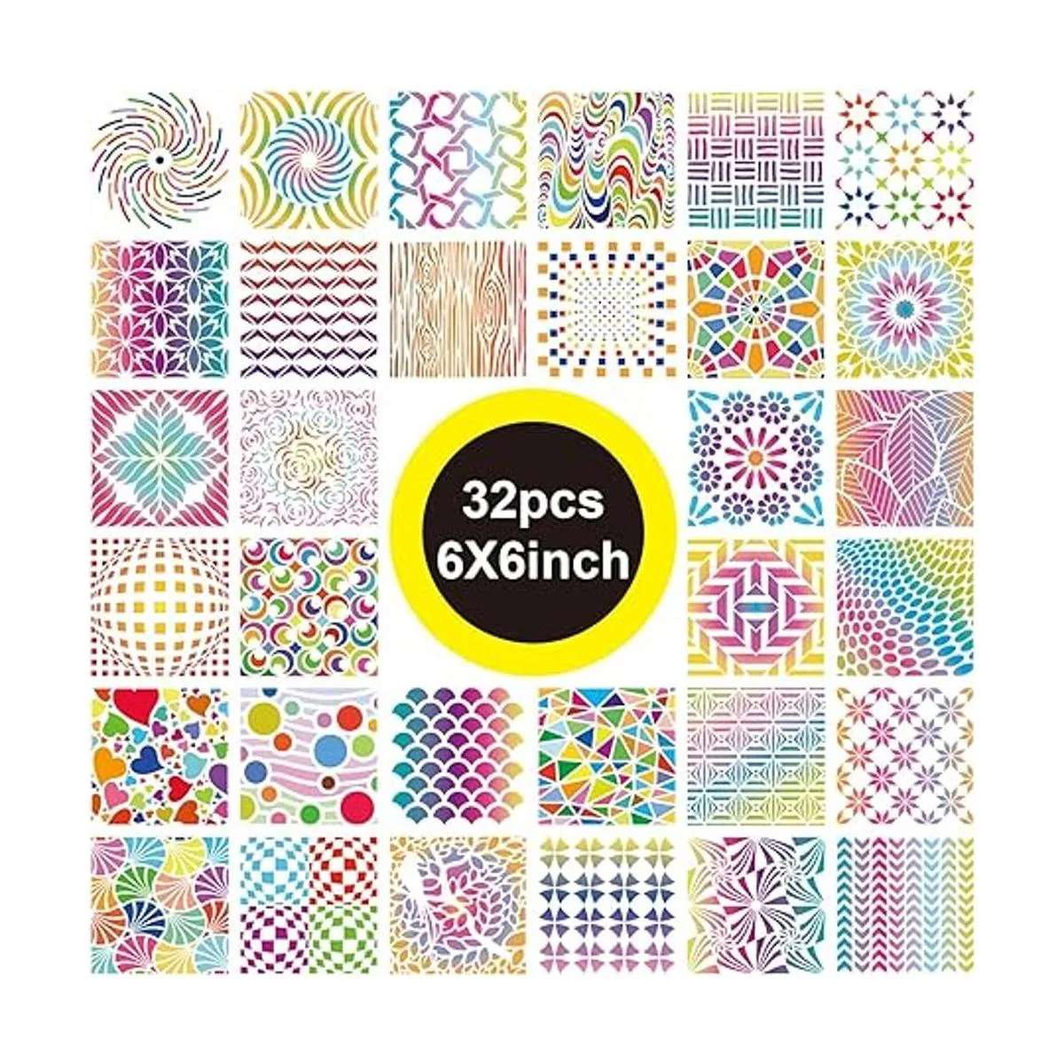 Paquete de 32 plantillas geométricas de 6 x 6 pulgadas, plantillas de pintura para álbumes de recortes, azulejos de galletas, muebles, decoración de suelo de pared, manualidades, trazos, suministros de arte