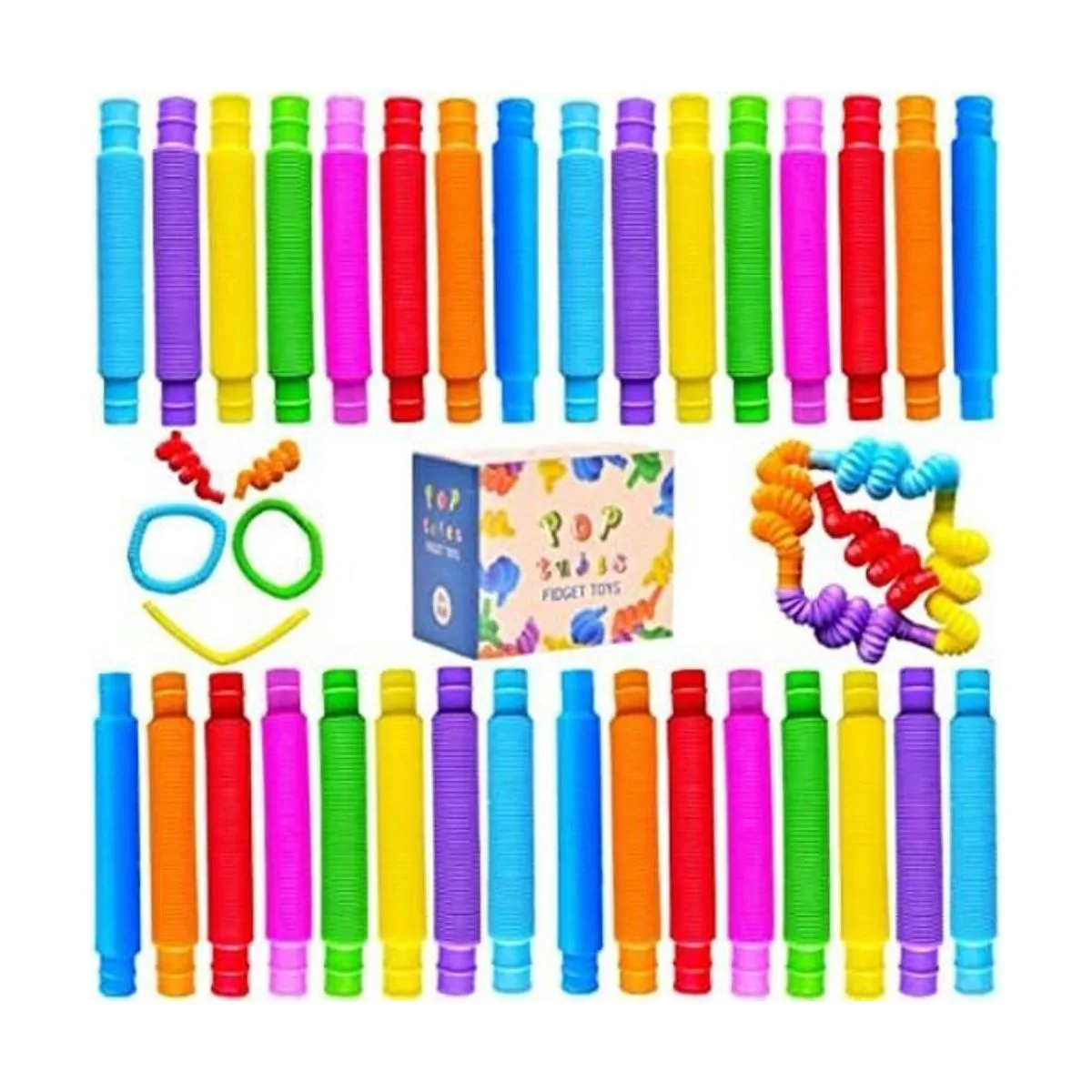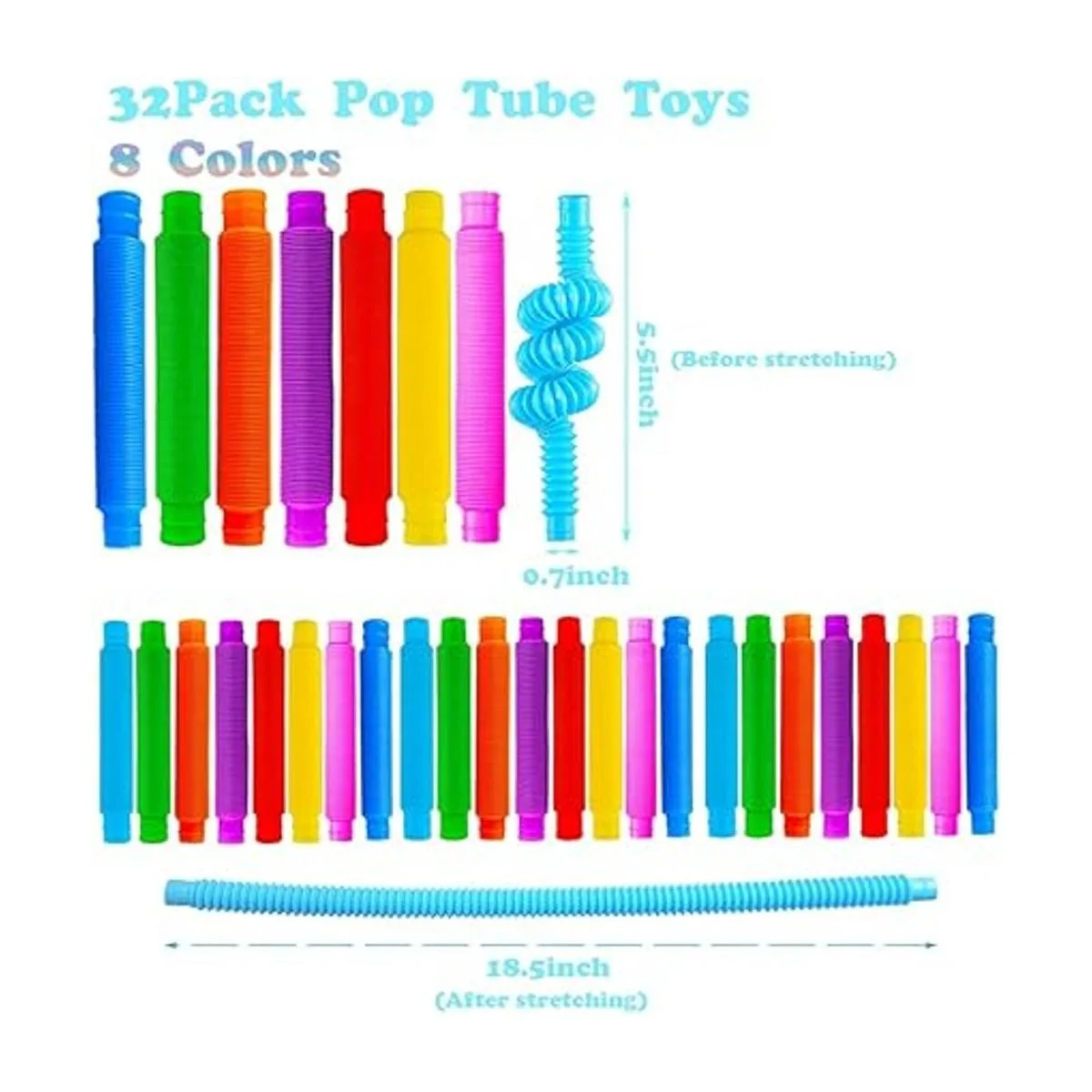 Divertido juego: este kit de tubo pop tiene una gran flexibilidad y capacidad de rotura, y puede proporcionar horas de diversión Los niños están felices con este popular juguete sensorial de tubo, porque cuando se estiran y contraen, hace un ruido o sonido fresco