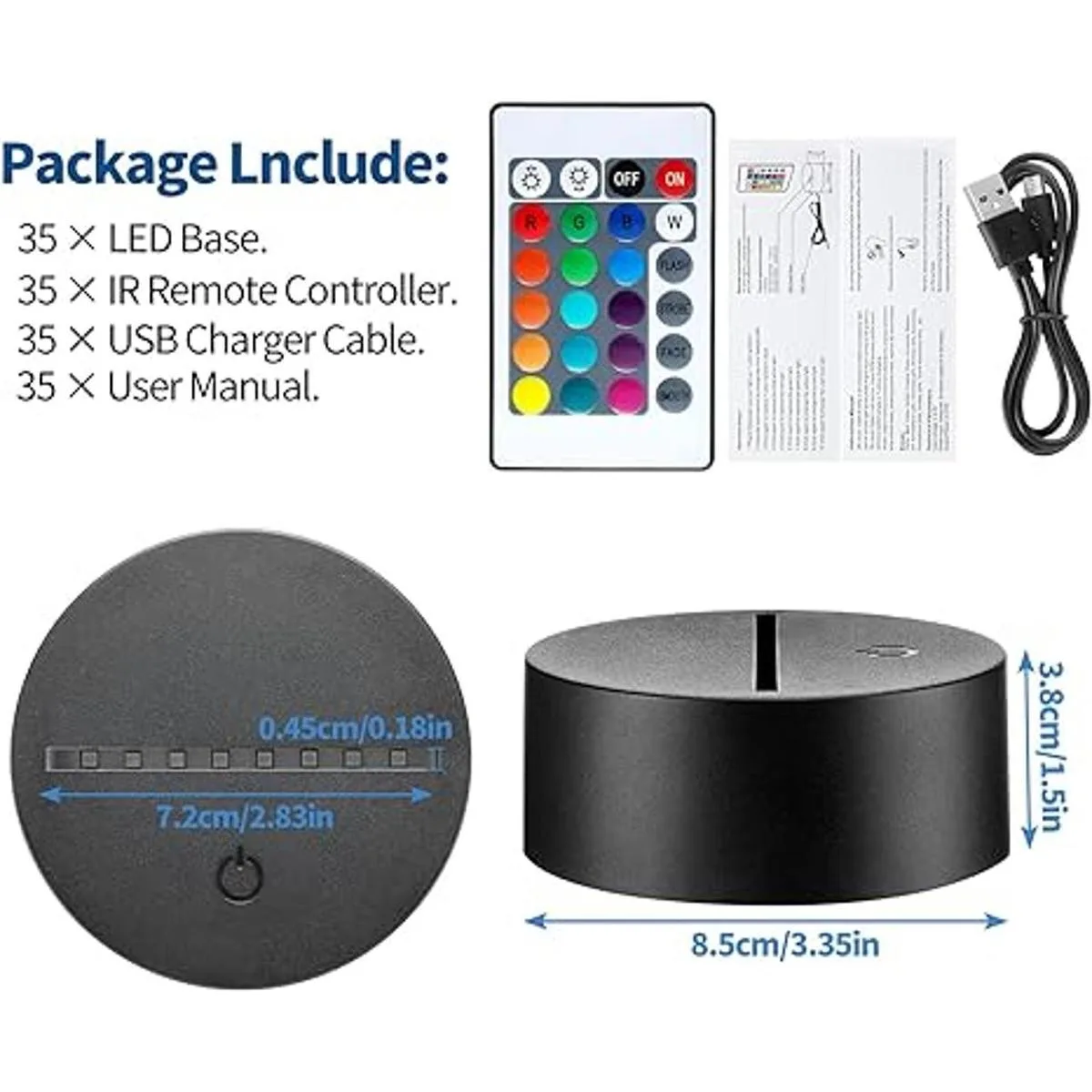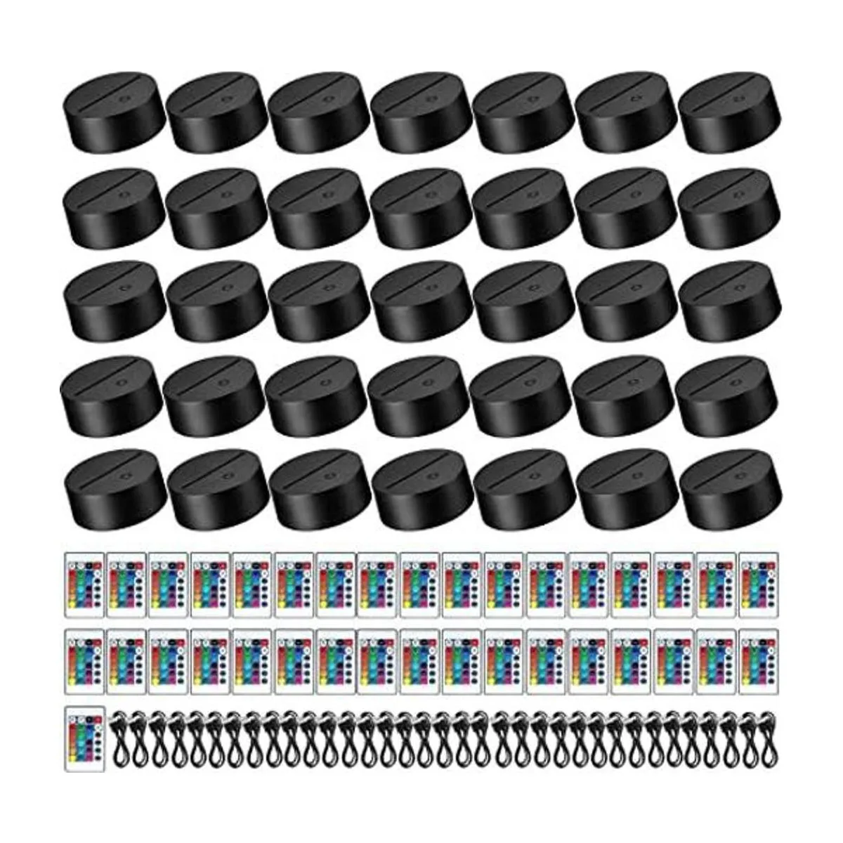 Paquete de 35 bases de luz LED 3D, base de lámpara LED de noche, base de luz LED acrílica con control remoto, cable USB, soporte de exhibición para acrílico, luces decorativas para habitación, tienda, restaurante negro