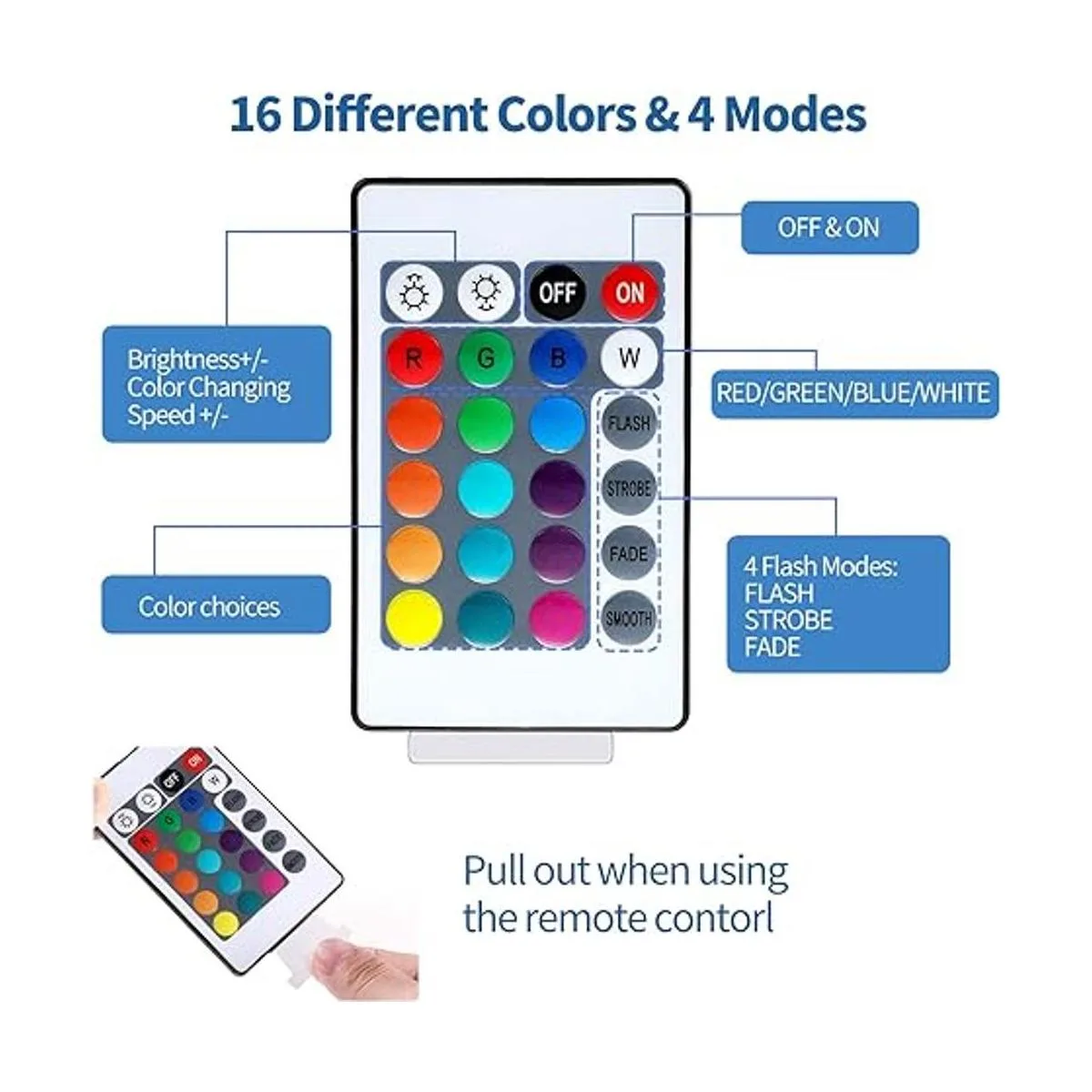 Luces ajustables de 16 colores: toca el interruptor en la base de luz 3D o utiliza el control remoto portátil equipado, puedes controlar el cambio de 16 luces de colores y 4 modos de luz para elegir diferentes modos de parpadeo, una decoración elegante y crear el ambiente que necesitas