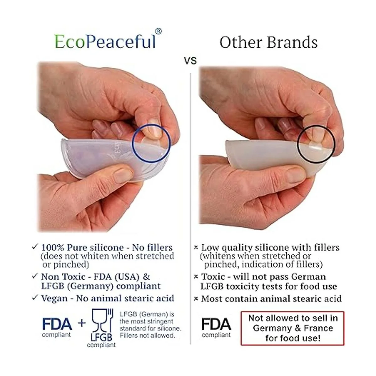 Garantía del fabricante de por vida: cuidamos el medio ambiente, por lo que fabricamos productos reutilizables de calidad sin residuos de por vida. Resistente y duradera: la correa es 30 más gruesa/pesada que los anillos de enlatado de bolas. Nuestras tapas no se rompen, decoloran ni degradan como las tapas de plástico, ni se doblan ni se oxidan como las tapas de conservas originales. Embalaje sin plástico: empaquetado en caja de papel 100 reciclable. Todos los productos EcoPeaceful están empaquetados sin plástico.