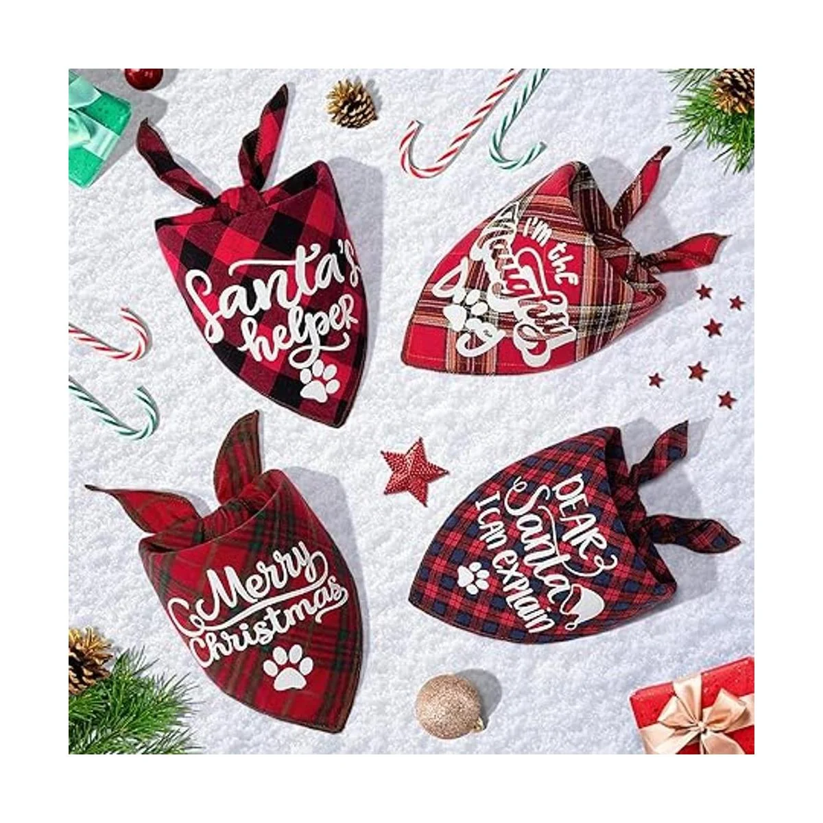 Paquete de 4 bandanas de cumpleaños para perros Clásico triángulo Feliz Navidad impresión a cuadros otoño Navidad bufanda baberos bufanda bufanda baberos pañuelo conjunto de regalos Accesorios de decoración para mascotas pequeños a grandes cachorros perros gatos