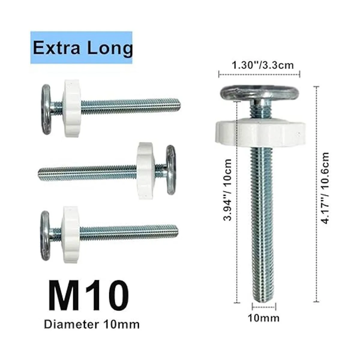 M10 Paquete de 4 varillas de eje M10 de 0.394 in, extra largas, 3.9 in, varillas de eje roscadas para todas las puertas de bebés y niños, mascotas y perros. Las puertas de presión roscadas tienen un material metálico muy fuerte con rueda blanca ajustable de plástico.