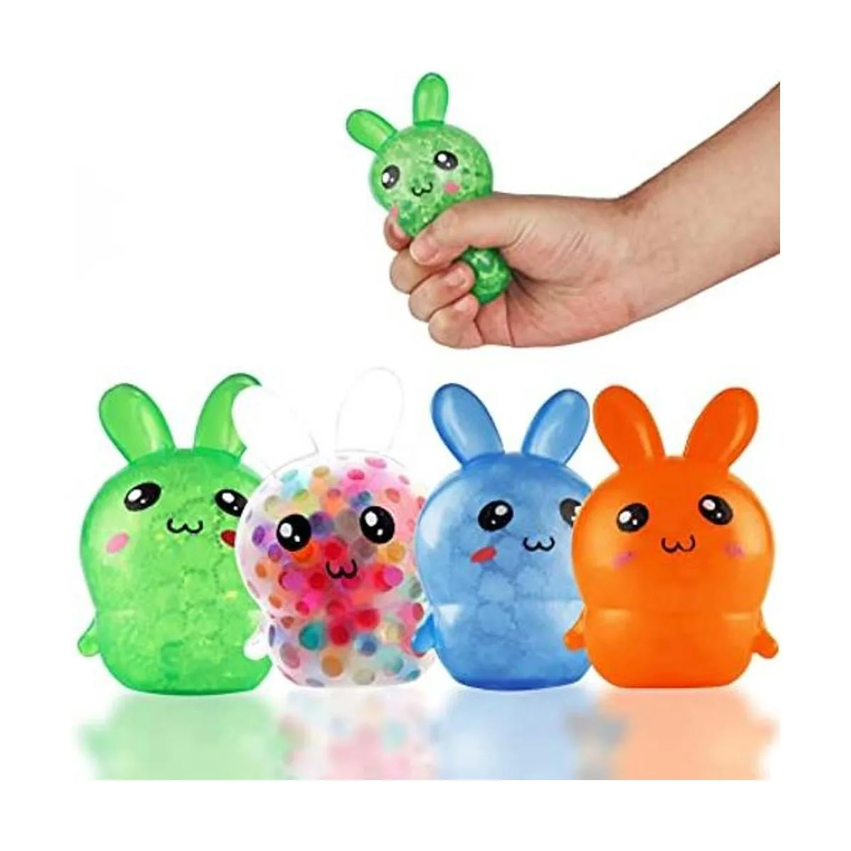 4 paquetes de bolas de estrés de conejo de Pascua Puedes obtener 4 bolas de estrés de Pascua de conejo en diferentes colores: blanco, azul, naranja y verde, con cuentas en el interior. Son bonitas y suaves bolas que miden 3.94 pulgadas de alto y 2.64 pulgadas de ancho, se adaptan perfectamente a la palma de las manos. Puedes llevarlo a cualquier lugar. Un buen juguete sobre la marcha en un coche, avión, escuela, oficina, restaurante, camping y viajes.