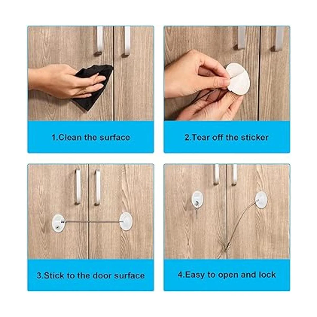 Paquete de 4 cerraduras de puerta de refrigerador con llaves adhesivas para nevera, congelador, cerradura de puerta archivador, cajón para seguridad infantil y privacidad blanco