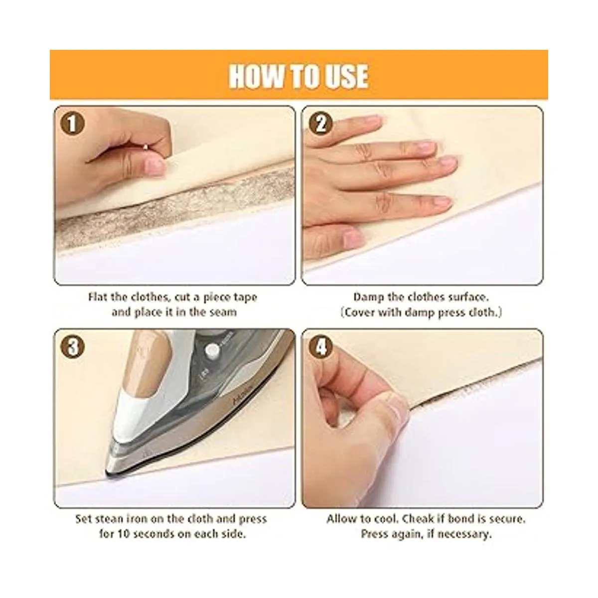 Uso fácil: aplana la ropa y coloca la cinta adecuada en la costura, humedece la superficie de la ropa, luego deja la plancha durante unos 10 segundos moviendo la plancha hacia adelante y hacia atrás