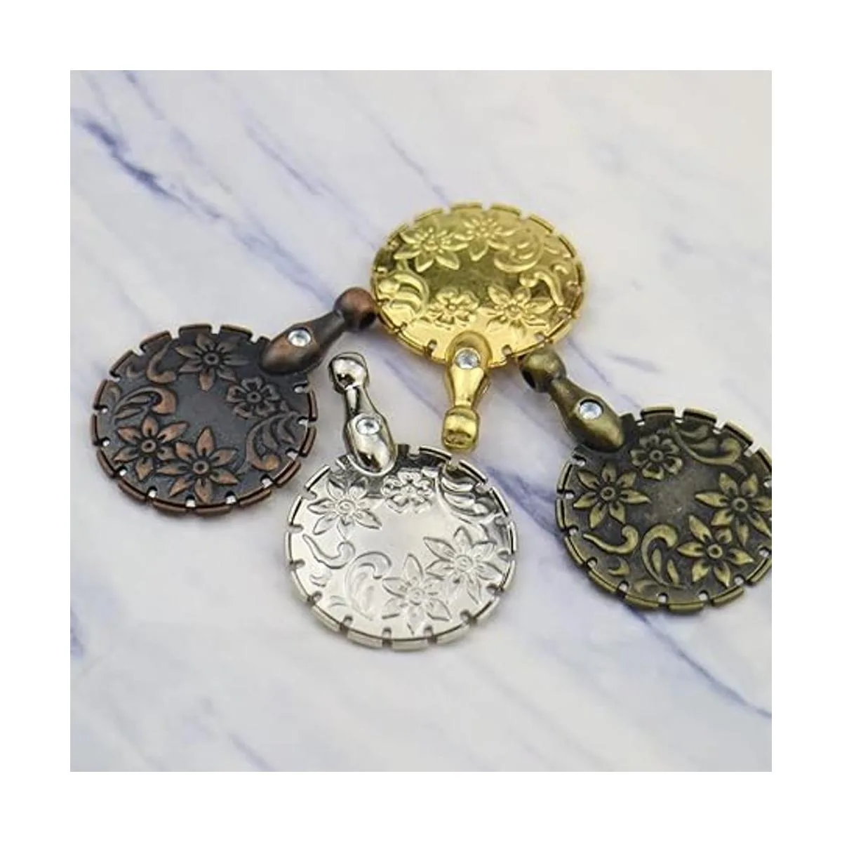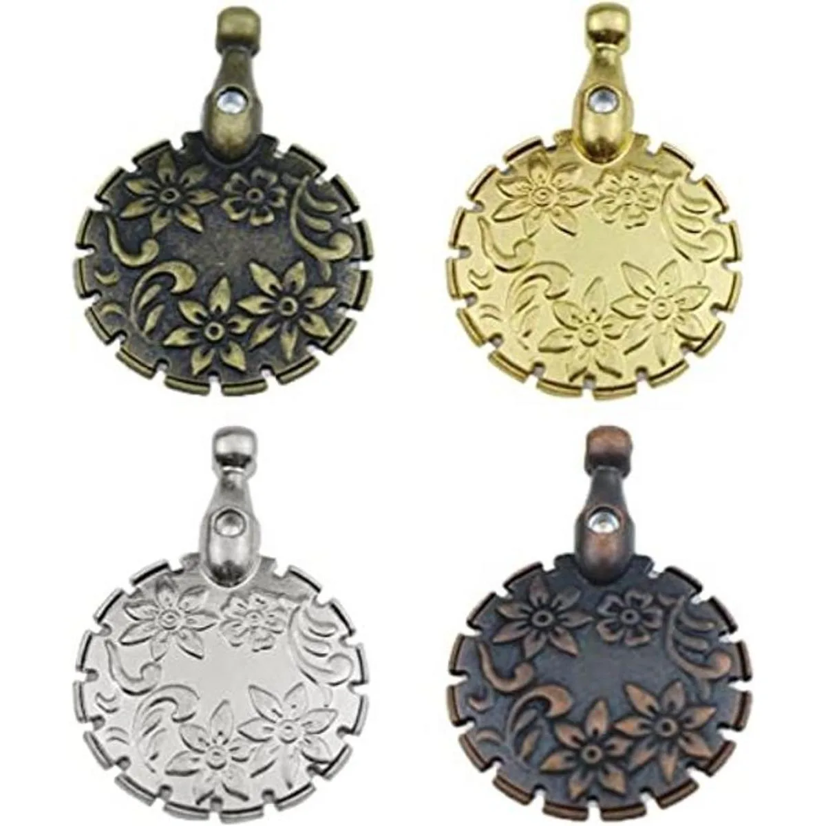 Paquete de 4 colgantes de cortador de hilo de hilo, cortador de hilo redondo, de metal antiguo, herramientas de corte de hilo para manualidades, costura y manualidades, Metal