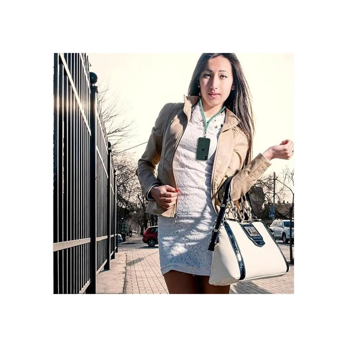 Material de alta calidad: la correa para el cuello está hecha de material de nailon, suave y agradable al tacto. Con longitud retráctil y gancho de metal desmontable inoxidable. Suficiente para su uso diario y compartir con otros. Compatible con carga inalámbrica, con cable y escuchar música, y puedes usarlo como un collar, hombro o cruzado de acuerdo a tus necesidades.