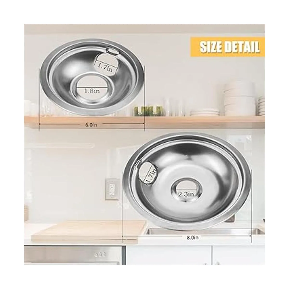 Tamaño: 6 pulgadas mide 7.5 pulgadas y 8 pulgadas mide 9.4 pulgadas