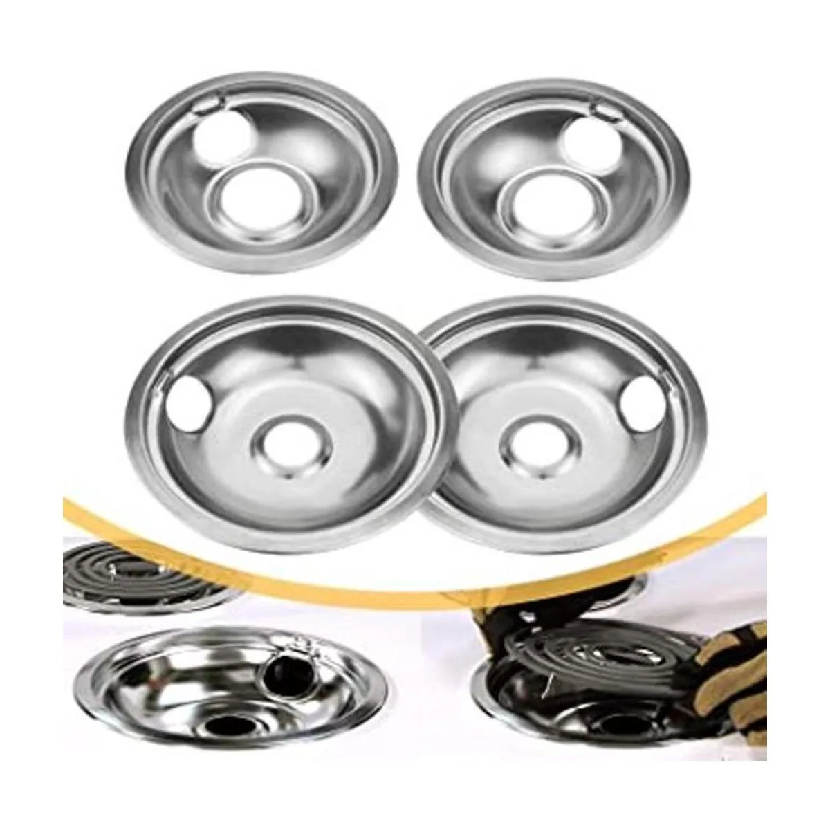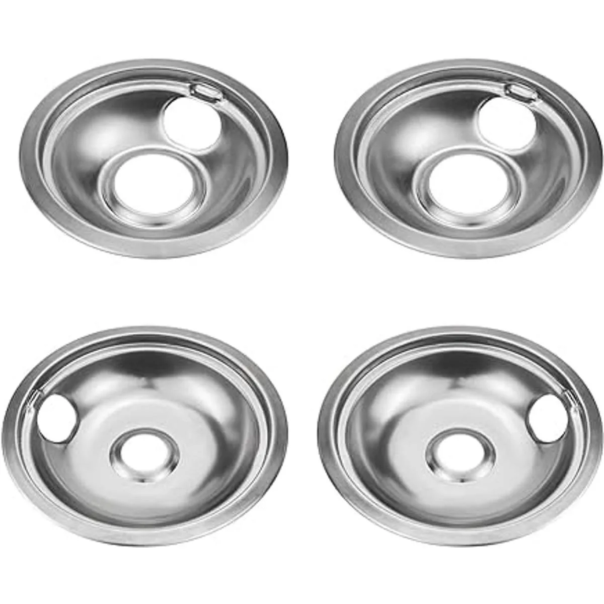 Paquete de 4 cuencos reflectores de acero inoxidable, kit universal de bandeja de goteo, anillos quemadores de estufa de gas para Whirlpool W10278125