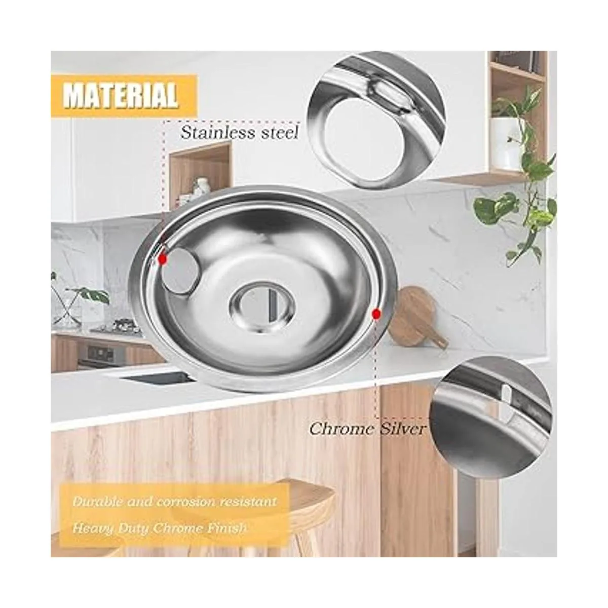 Material: acero inoxidable. Duradero y resistente a la corrosión. Color: plateado cromado. Acabado cromado resistente