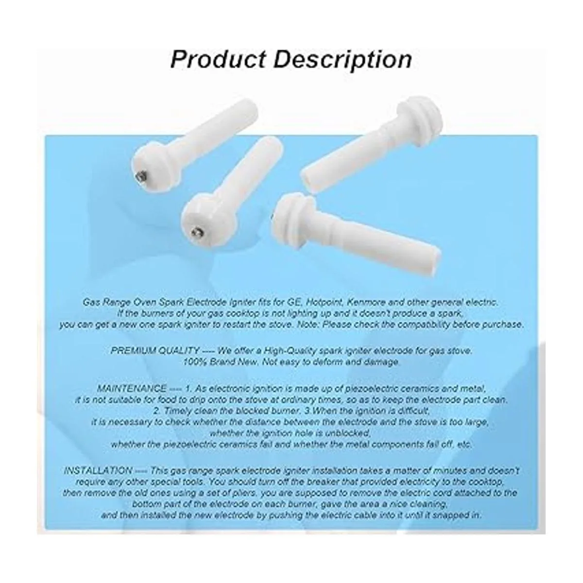 Paquete de 4 electrodos de chispa para horno de gas para GE WB13K10014 AP3779012 1085568