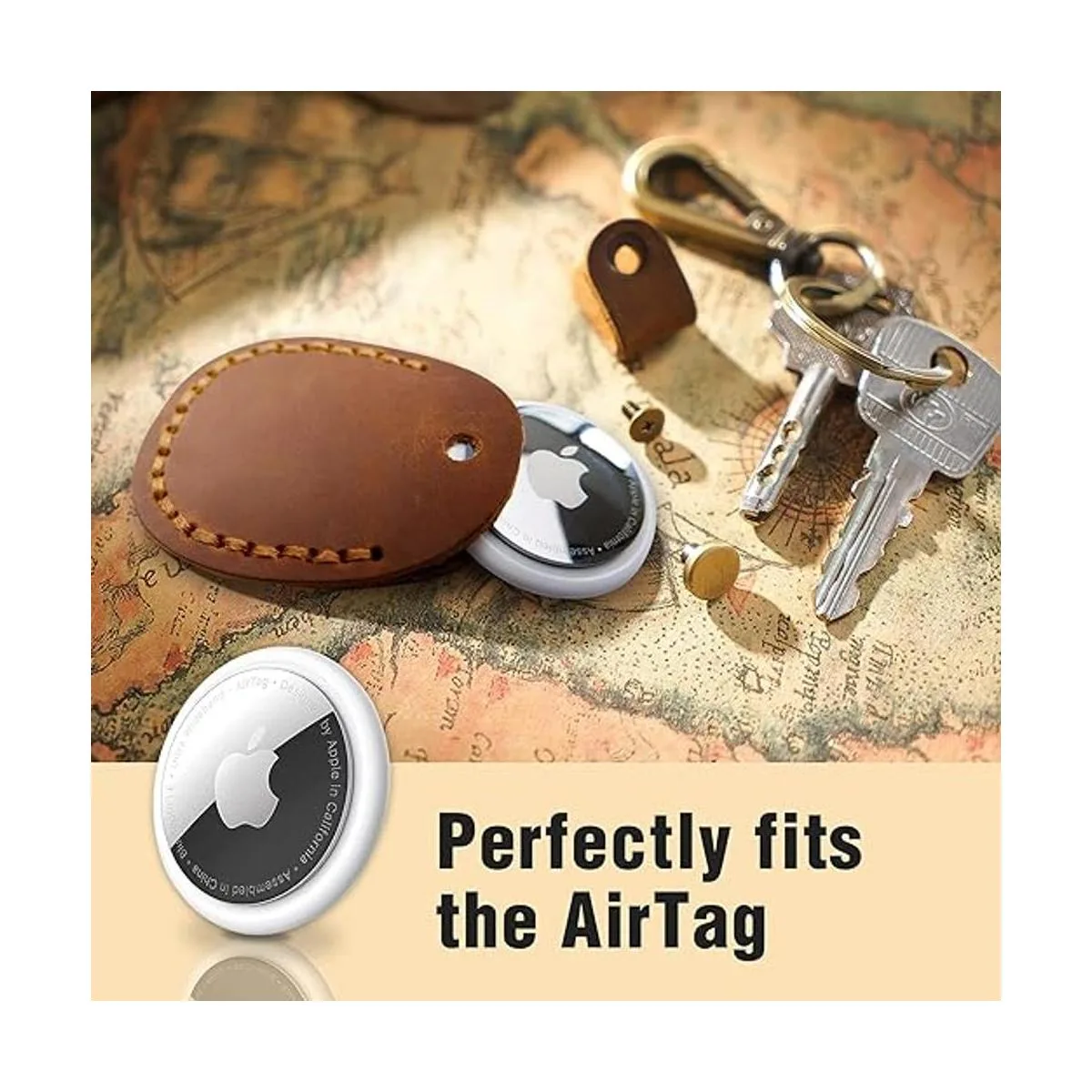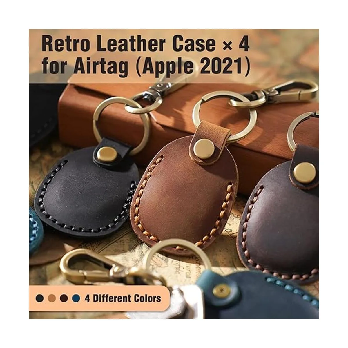 Paquete de 4 fundas de cuero para AirTag Tracker, portátil, hecho a mano, de piel auténtica, con llavero, funda protectora compatible con AirTag 2021 4 unidades